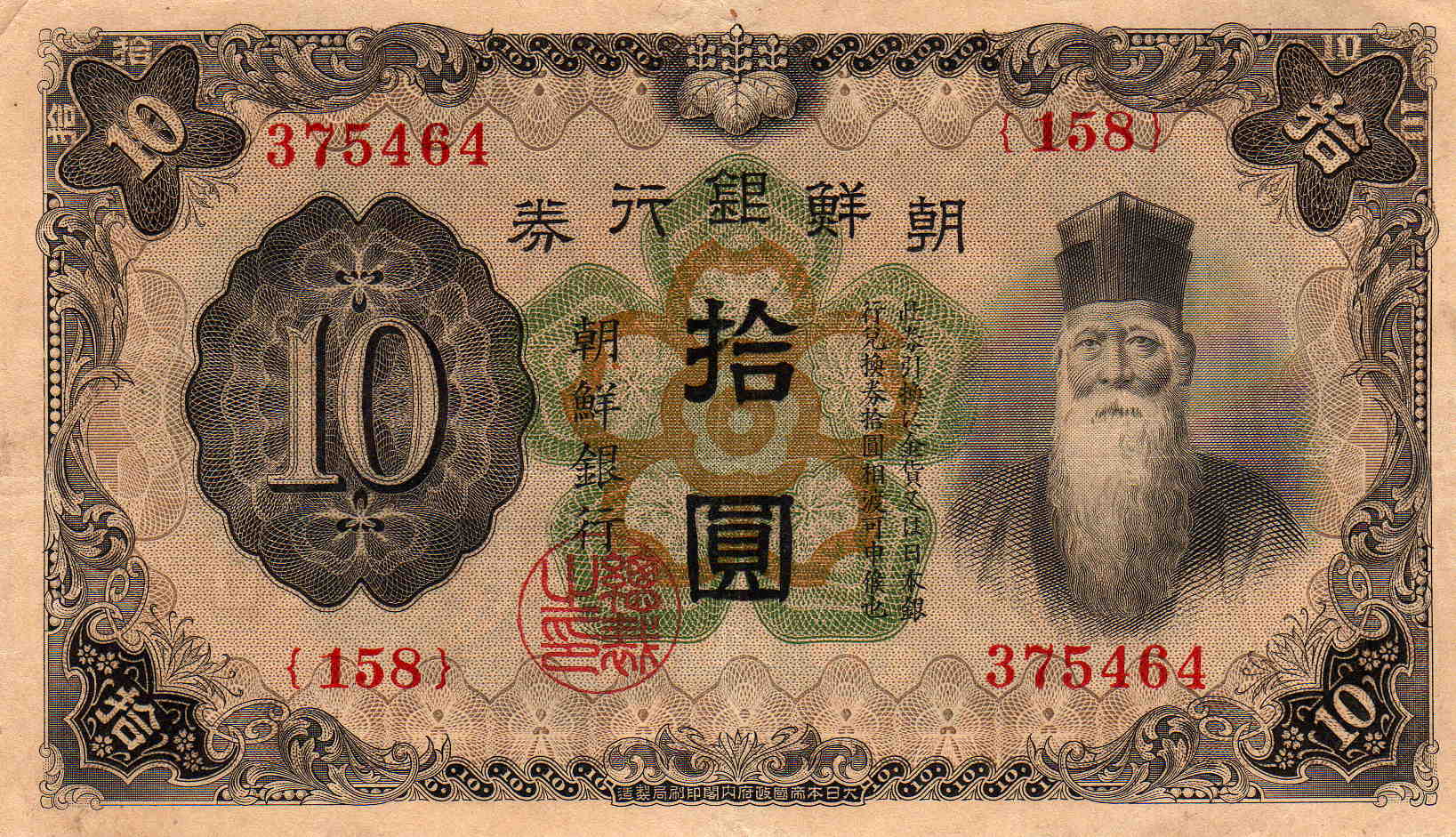 수노인 초상의 실제 모델에 대해서는 고대 일본의 무장이자 대신이었던 타케우치노 스쿠네라는 설도 제기된다. 해당 지폐는 일제강점기가 끝난 제2차 세계 대전 이후에도 한동안 통용되었다.