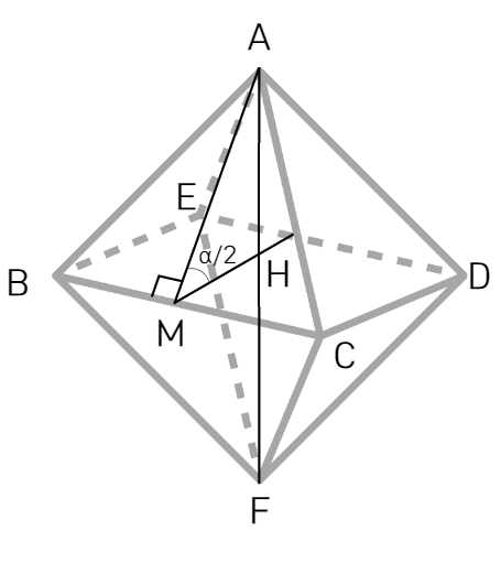 정육각형과 정사각형이 만나는 경우의 이면각은 정사각뿔에서 밑면과 옆면이 이루는 각을 라 할 때, 와 같으며, 그 값은 이다.