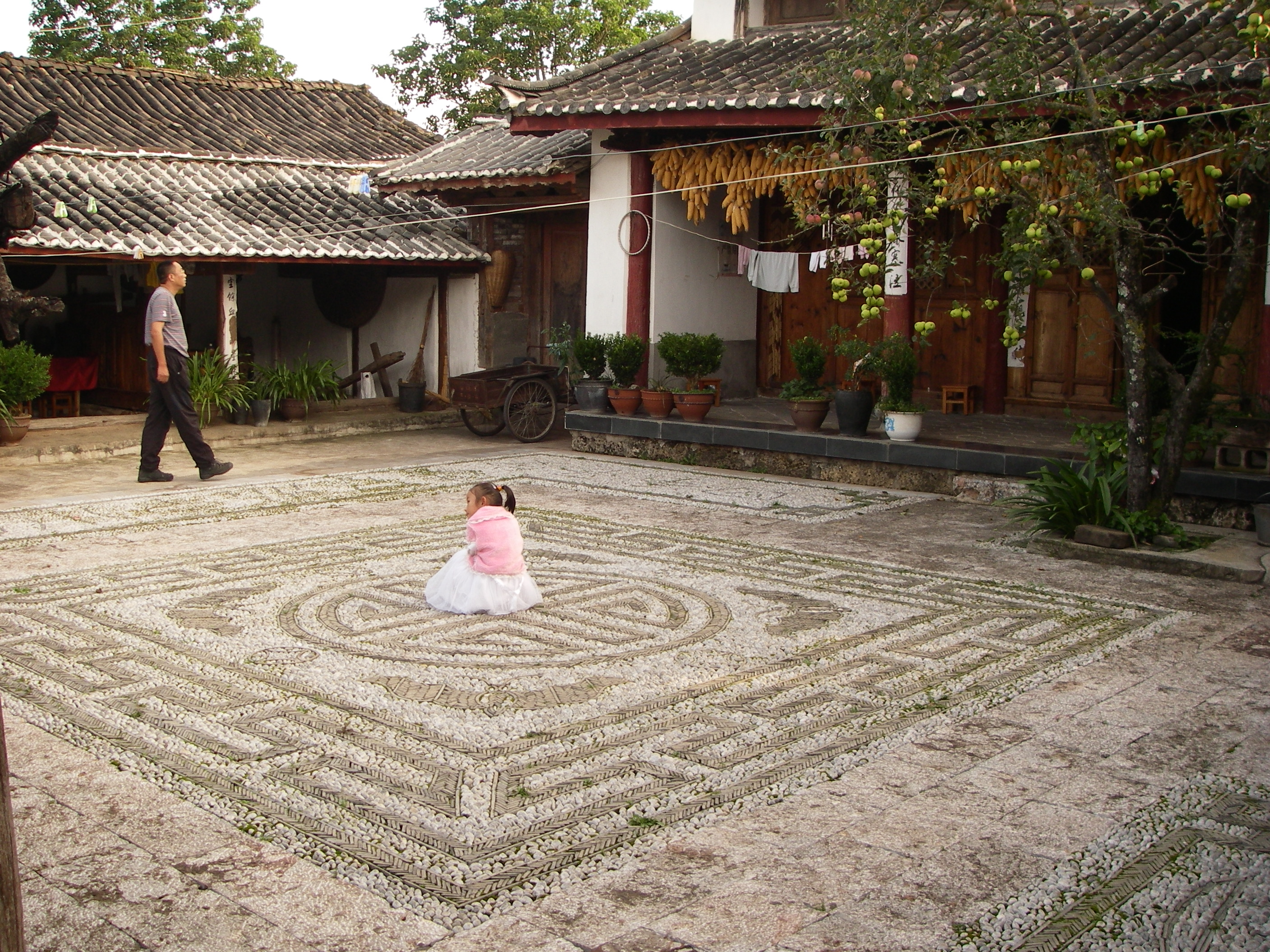 나시족은 원래 모성 사회였으며, 이는 '할머니방(祖母部屋)'이라는 전통 가옥 구조에서도 나타난다. 할머니방은 집안의 최연장 여성이 거주하는 공간으로, 선조 제단이 있고 미성년 자녀들이 함께 생활하는 중심 공간이었다. 오래된 집에는 여전히 이 방이 남아 있는 경우가 있다.나시족 가옥은 한족 건축 양식의 영향을 받아, 안마당을 중심으로 한 채에서 네 채의 건물이 배치되는 형태가 일반적이다. 때로는 인접한 안마당끼리 연결되기도 한다. 겉보기에는 진흙 벽돌과 목재 구조로 단순해 보일 수 있지만, 자세히 보면 창틀과 문에 정교하고 섬세한 문양이 새겨져 있으며, 기둥과 기둥 받침대 역시 우아하게 장식되어 있다. 이러한 구조는 편안하고 통풍이 잘되는 주거 환경을 제공한다. 나시족 가옥을 특징짓는 많은 목각 장식들은 오늘날 백족 장인들에 의해 만들어지기도 한다.