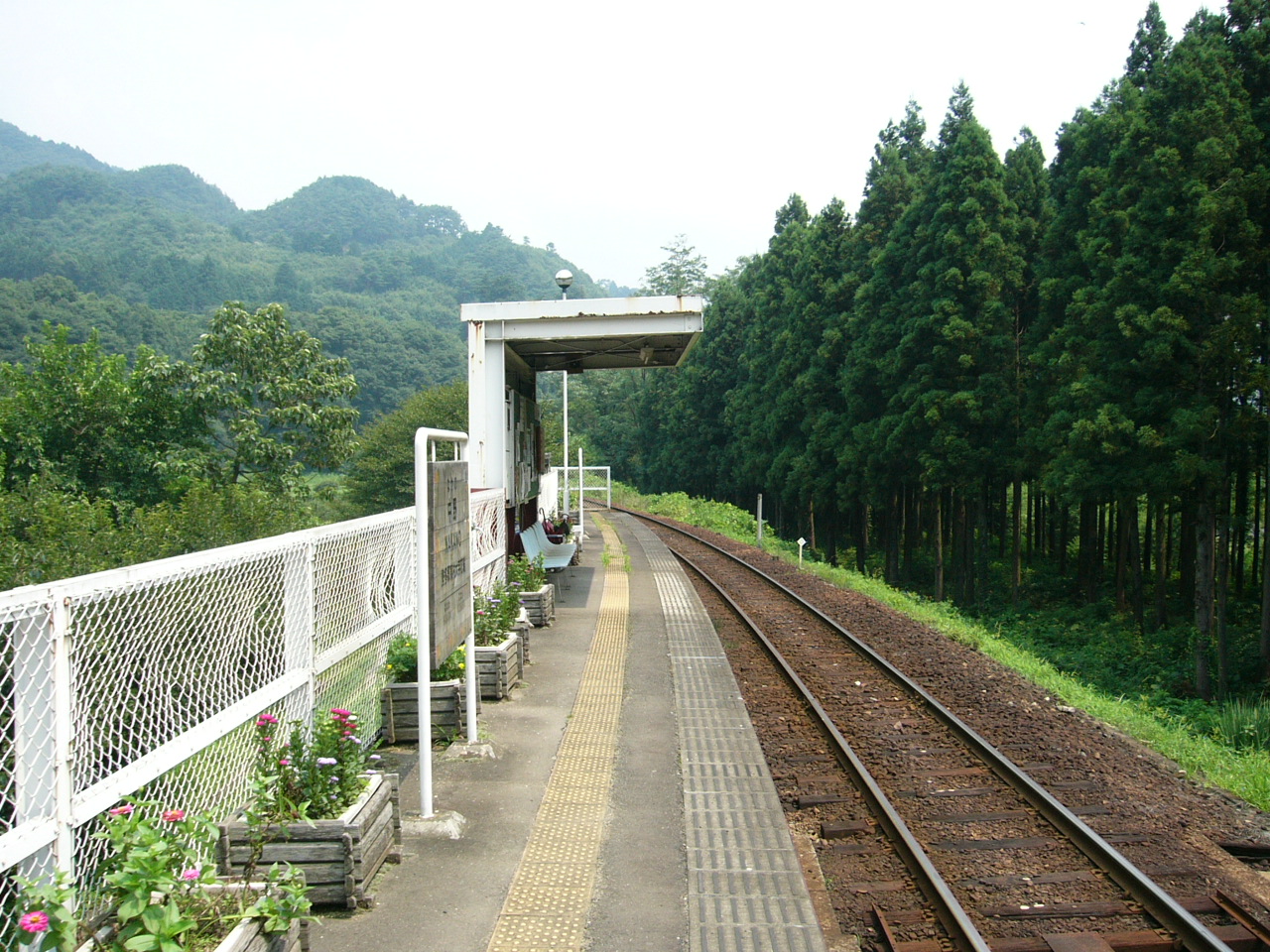 단선 승강장 1면 1선의 구조를 가진 역이다. 곡선 위에 설치되어 있으며 무인역이다. 주차장은 없지만 기류 방향 아래쪽에 주차장이 있다. 화장실은 역 출입구의 도로 반대편(건널목 옆)에 있다.[1]