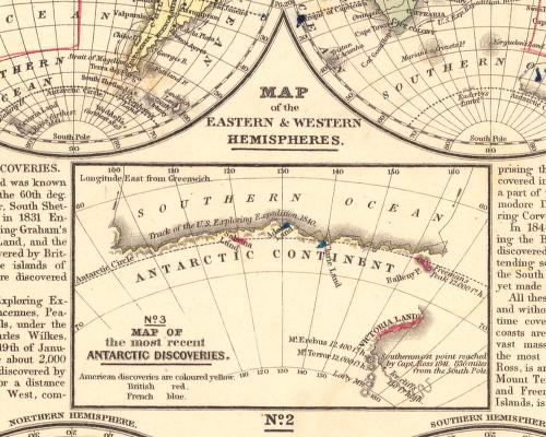 대항해 시대 이후, 영국의 탐험가 제임스 쿡은 남쪽으로 항해한 몇 안 되는 탐험가 중 한 명이었다. 그의 두 번째 항해(1772년-1775년)는 세계 지도를 영구적으로 바꾸었다.[6] 그 이전에는 테라 아우스트랄리스라는 거대한 대륙이 남반구 대부분을 차지하고 있다고 믿었다. 그러나 쿡은 그러한 거대한 육지는 없으며, 거대한 빙원이 남극 대륙으로 접근하는 것을 막고 있다는 것을 발견했다.[6] 그는 얼음의 양으로 미루어 보아 얼음이 있는 육지가 있을 것이라고 추측했지만, 그 육지가 너무 남쪽에 있어 사람이 살 수 없고 경제적 가치도 없을 것이라고 확신했다.[6]2. 2. 관심 재점화와 탐험 재개 (19세기 초중반)