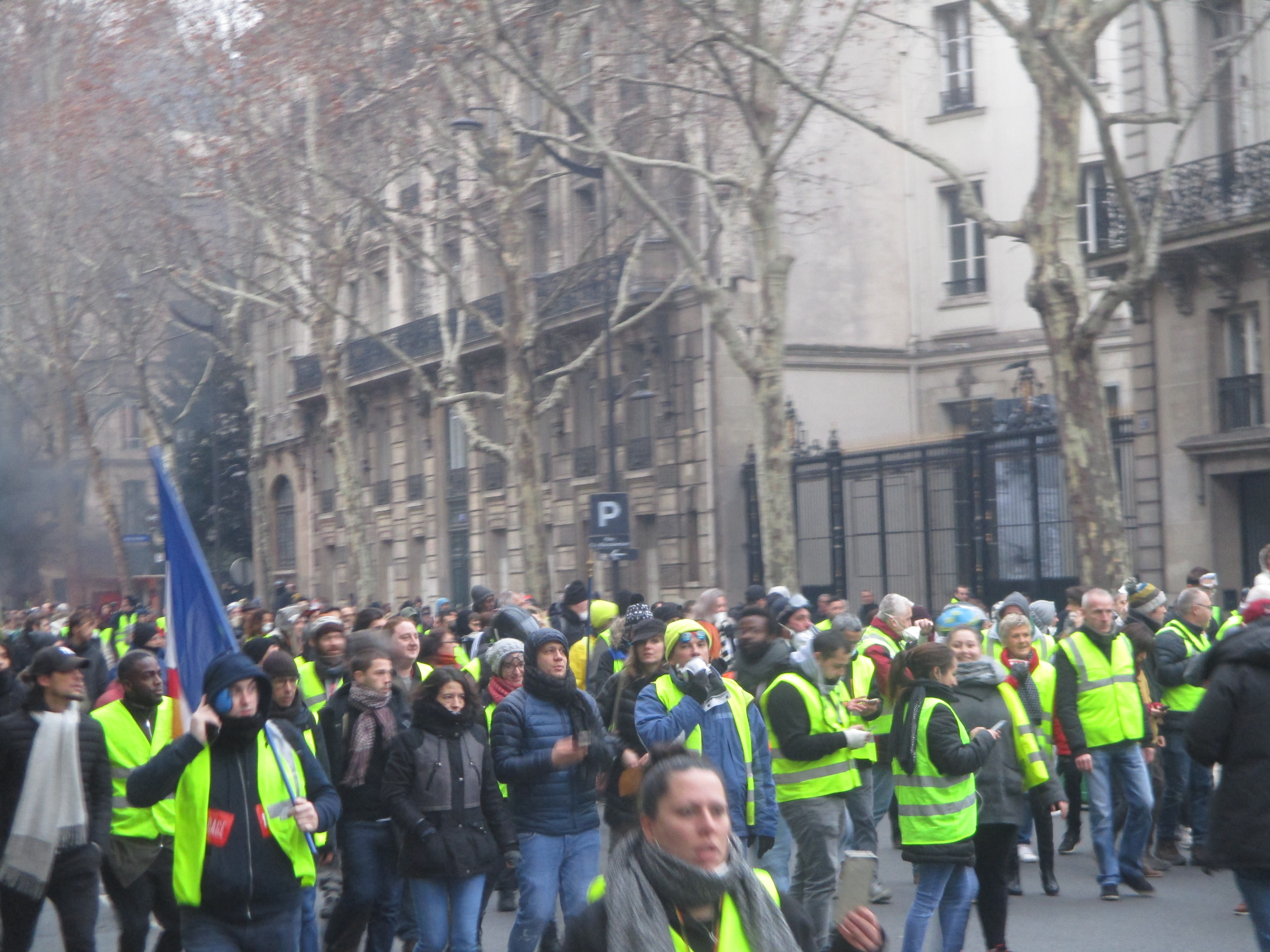 2018년 11월 24일, 파리 샹젤리제 거리에서 대규모 시위가 발생하여, 시위대는 거리에 불을 지르고, 표지판을 파괴하고, 바리케이드를 치고, 돌을 뜯어냈다. 경찰은 최루탄과 고압 살수차를 사용하여 시위대를 해산시켰다.