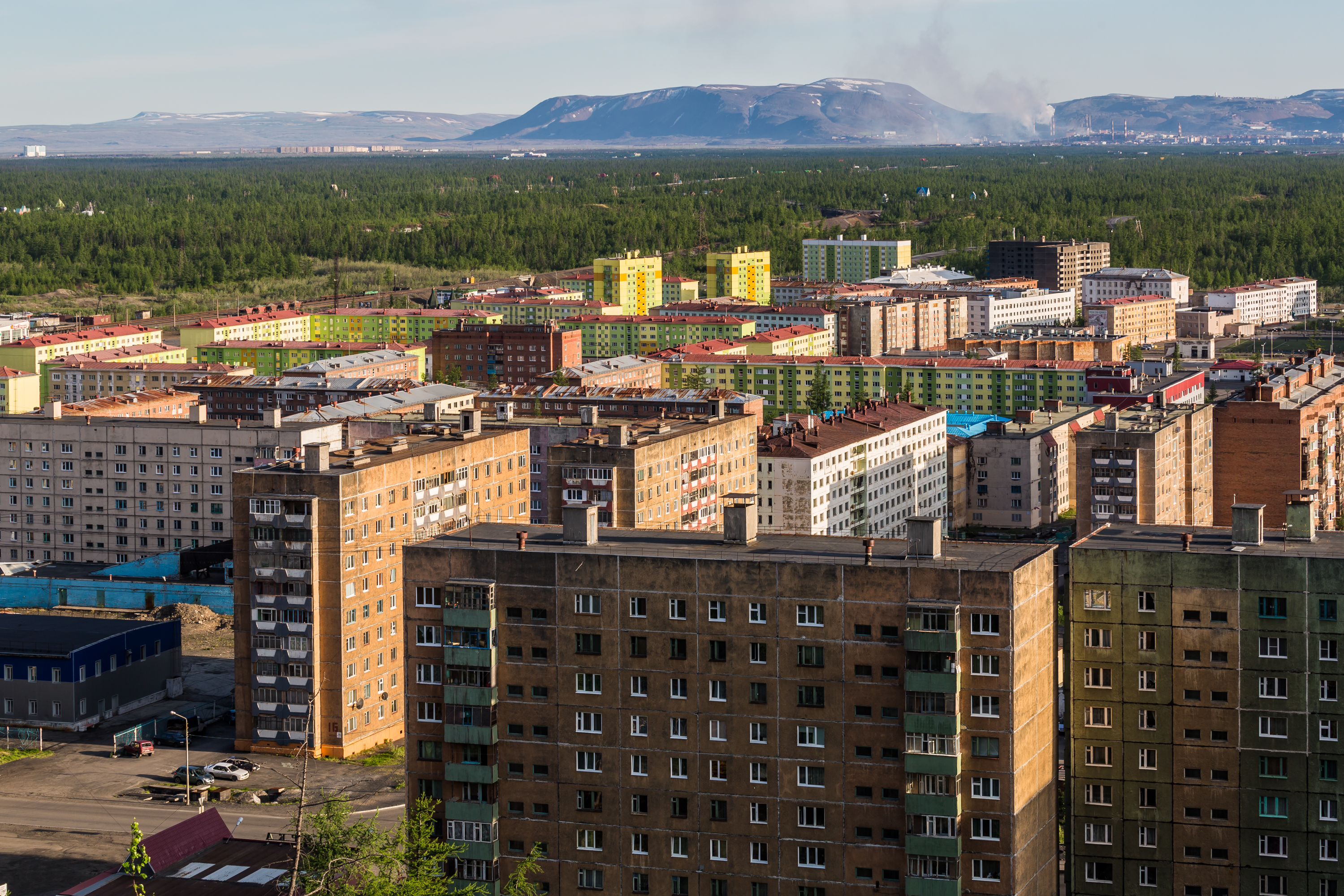 냉전 시절 소련 중공업의 상징이었던 노릴스크는 1970년대부터 심각한 환경 문제에 직면했다. 대기는 황산화물에 의해 심하게 오염되었지만, 고용, 소득, 교육, 복지 수준이 높아 인구는 줄지 않고 있다. 현재 노릴스크는 폐쇄 도시로, 외국인은 특별 허가를 받아야 방문할 수 있다.[26]