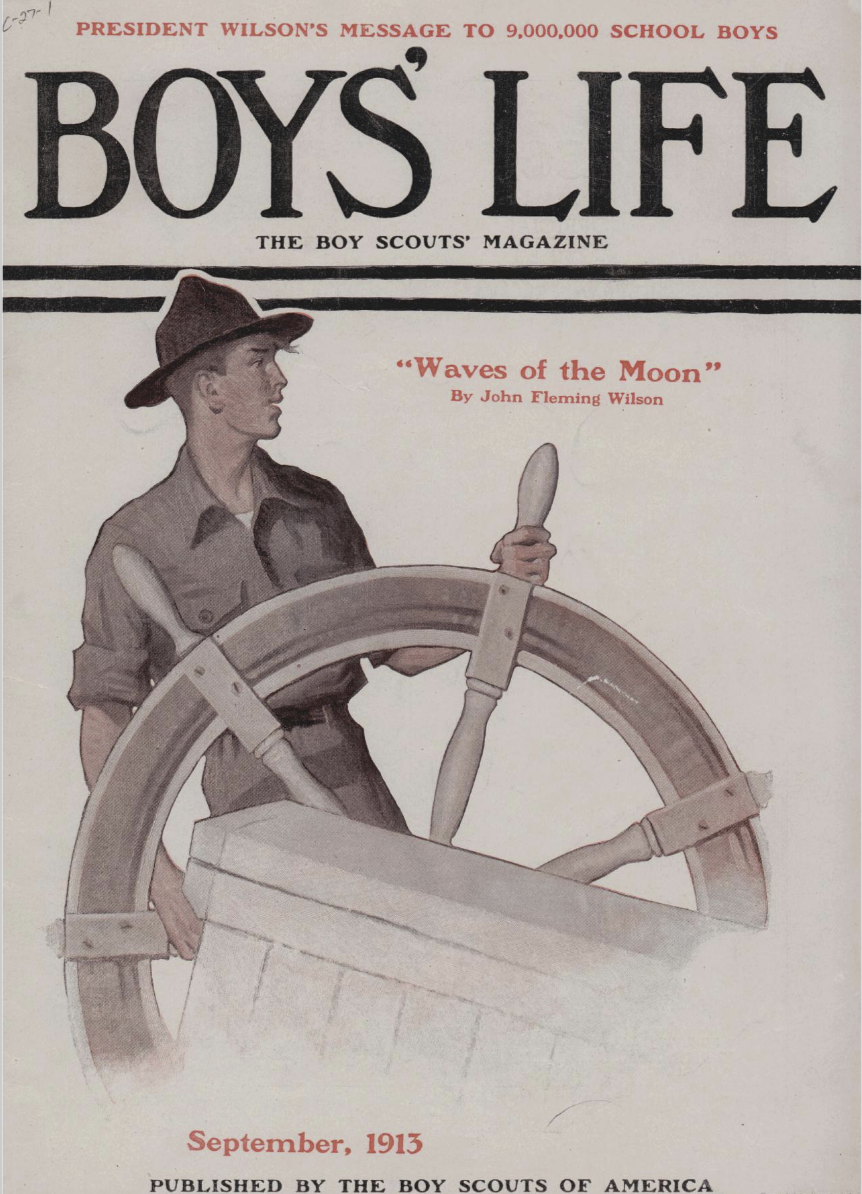 이후 록웰은 ''보이스 라이프''의 전속 작가로 고용되어, 매달 표지 한 점과 이야기 삽화 세트를 제작하는 대가로 50USD를 받았다. 이는 그의 첫 유급 예술가 직업으로 알려져 있다.[17] 19세가 되던 1913년, 록웰은 미국 보이스카우트가 발행하는 ''보이스 라이프''의 미술 편집자가 되었다. 그는 이 직책을 3년간 유지했으며,[18] 이 기간 동안 여러 표지를 그렸다. 그의 첫 잡지 표지 작품인 ''Scout at Ship's Wheel''은 1913년 9월호 ''보이스 라이프''에 실렸다.