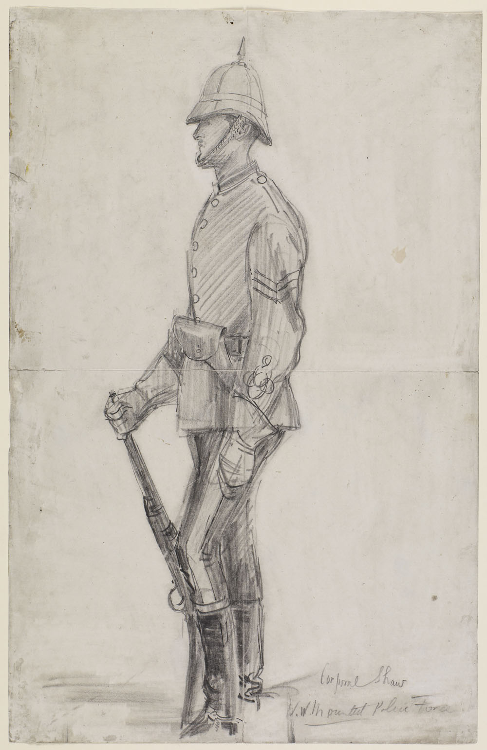 1899년 제2차 보어 전쟁 발발하자 많은 기마경찰 대원들이 자원하여 참전했다.[200] 144명의 기마경찰 자원병들이 캐나다 기병 소총대 제2대대의 거의 절반을 차지했다.[206] 스트래스콘나 경은 기마경찰을 본뜬 기마 보병 부대를 창설했고, 사무엘 스틸 경감을 포함한 33명의 현역 경찰 대원이 합류했다.[211]