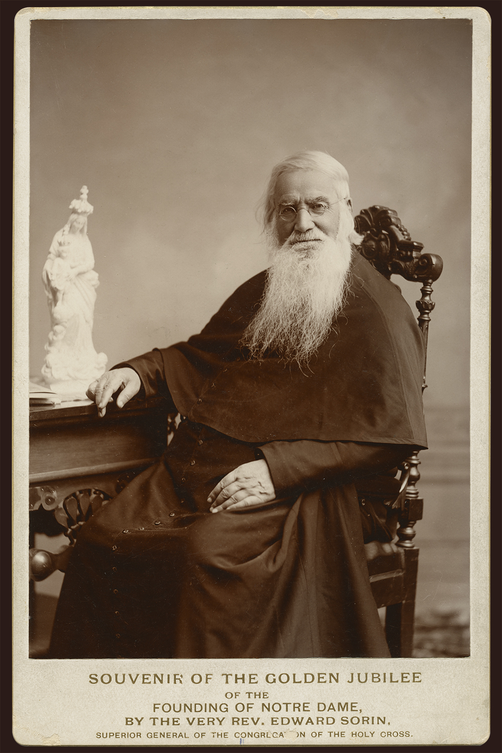 1842년, 뱅센스 로마 가톨릭 교구의 주교 셀레스틴 기네메르 드 라 헬란디에르는 성 십자가회의 에드워드 소린 신부에게 2년 안에 대학을 설립하는 조건으로 토지를 제공했다.[17] 소린 신부는 1842년 11월 26일, 같은 수도회 동료 신부 8명과 함께 부지에 도착, 스티븐 배딘의 옛 통나무 교회당을 학교로 사용하면서 학생 2명을 얻었고, 올드 칼리지, 최초의 교회, 최초의 본관을 포함한 학교 신설 건물들에 대한 전반에 관한 작업을 시작한다.[18]