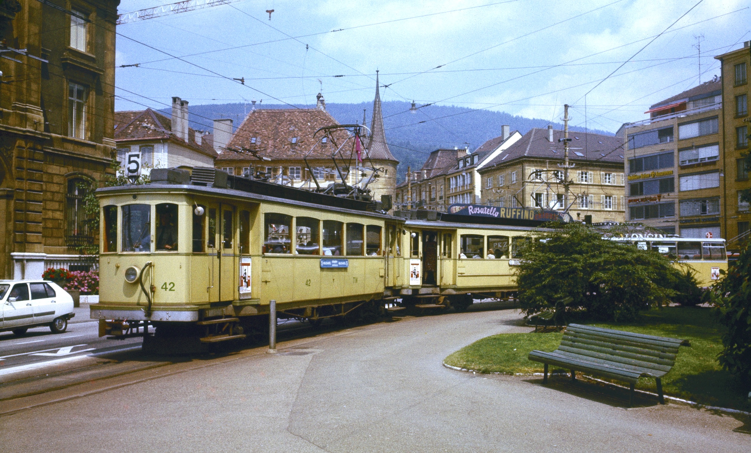 그러나 1940년부터 1976년 사이에 시내 노면전차 노선들은 점차 트롤리버스 노선으로 대체되었고,[1] 노선 번호는 그대로 유지되었다.[6] 가장 먼저 폐지된 노선은 1940년 세리에르로 가는 2번 노선이었다. 이어서 1949년에는 발랑진(Valangin)으로 가는 4번 노선, 1957년에는 생블레즈로 가는 1번 노선, 1964년에는 뇌샤텔 기차역(Gare CFF)과 라 쿠드르(La Coudre)로 가는 6번과 7번 노선이 폐지되었다.[7] 마지막까지 남았던 시내 노면전차 노선은 플라스 퓌리에서 코르셀까지 운행하는 3번 노선이었으며, 이 노선은 1976년 7월 11일을 마지막으로 운행을 종료했다.[7][8]