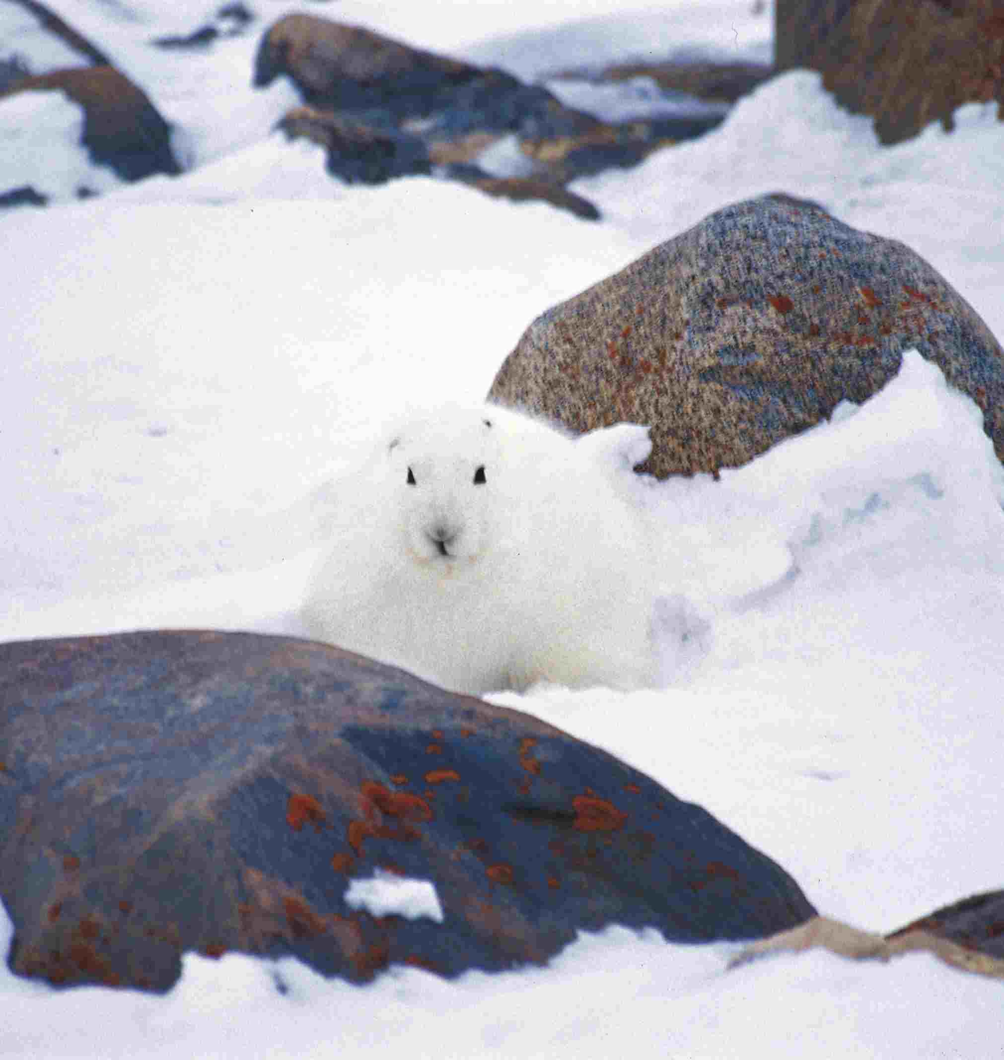 북극 툰드라에 사는 북극토끼는 추위에 강한 두꺼운 털을 가진 대형 토끼로, 서식지에 따라 털갈이를 하며 목본 식물을 주로 먹지만 기후 변화와 서식지 파괴로 생존을 위협받고 있다. - 산토끼속 - 고산토끼