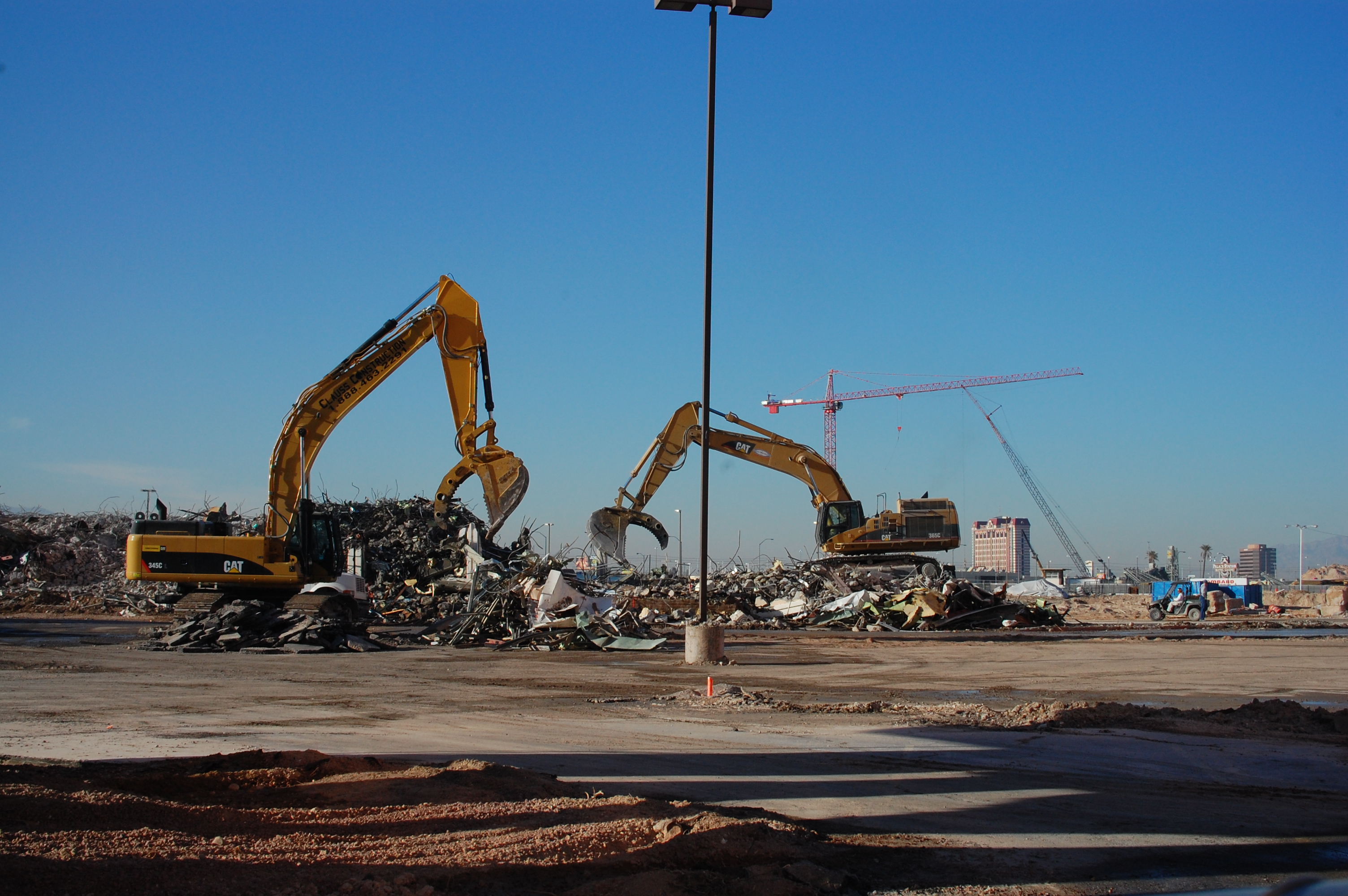 뉴 프론티어는 휴즈 시대의 카지노 중 마지막으로 철거된 곳이었다.[202] 2007년 11월 13일 오전 2시 37분, 5분간의 불꽃놀이 쇼 후 16층 규모의 아트리움 타워가 철거되었으며, 수천 명의 구경꾼들이 철거를 보기 위해 모여들었다.[202][119] 이 타워는 다른 라스베이거스 호텔 폭파 작업을 했던 컨트롤드 데몰리션에 의해 폭파되었다. 내부는 다이너마이트를 삽입할 수 있도록 제거되었으며, 총 1,040파운드가 타워의 6,200개 서로 다른 구역에 걸쳐 배치되었다.[201][119] 폭파로 인해 4층 높이의 콘크리트, 유리, 강철 잔해가 남았다.[119] 2개의 저층 호텔 건물은 굴착기를 사용하여 철거되었지만, 석면이 발견되면서 과정이 지연되었다.[203]