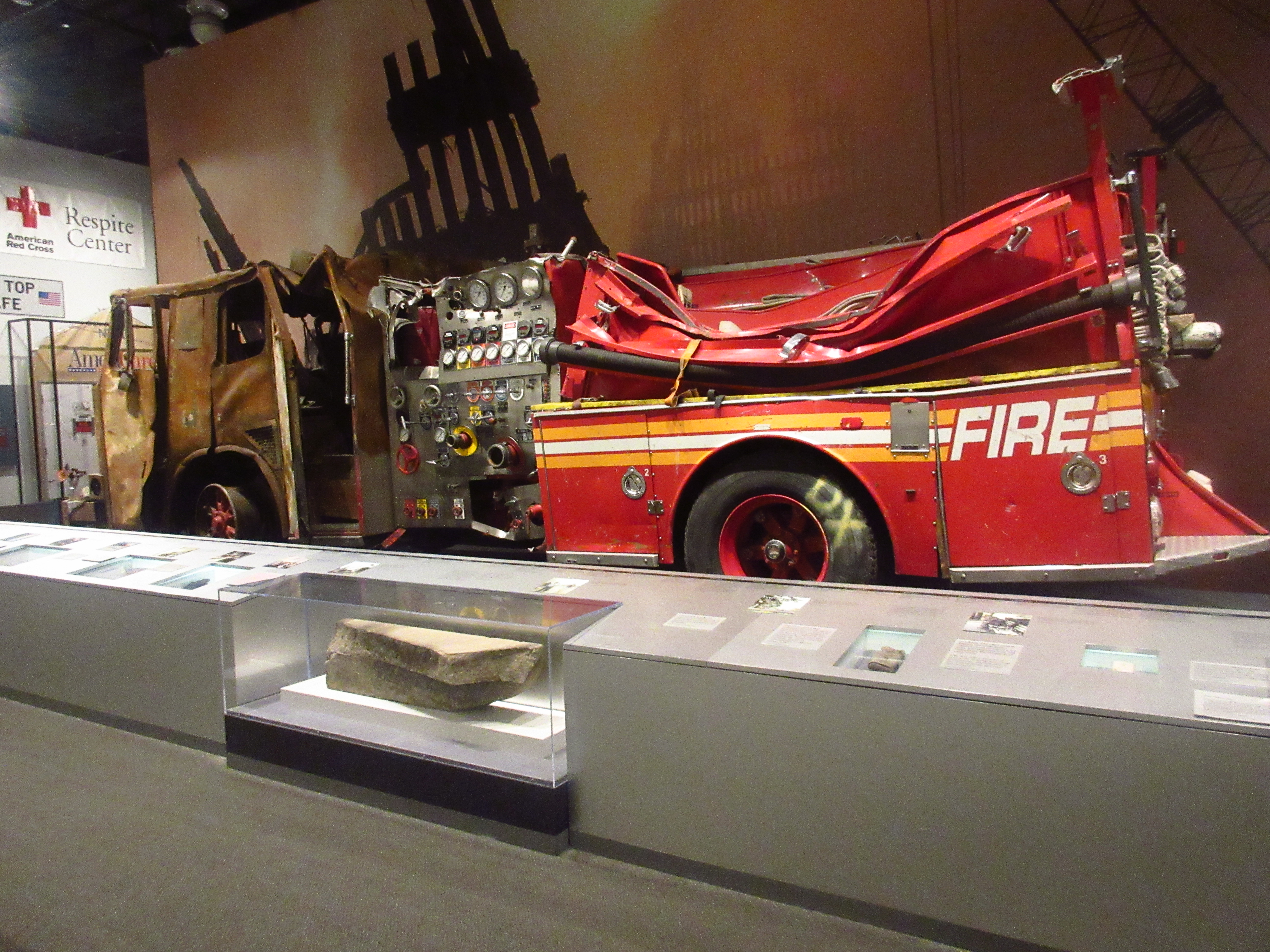 '''세계 무역 센터: 구조, 복구, 대응''' – 세계 무역 센터와 9.11 테러의 역사를 다룬 전시이다. 9.11 테러 이후 구조 및 복구 노력, 프레시 킬스 매립지의 증거 복구 작전, 공격에 대한 대중의 반응을 보여준다. 6번 엔진 사다리차의 잔해, 북쪽 타워 옆에서 게양된 깃발 등 현장의 수많은 유물을 소장하고 있다.
