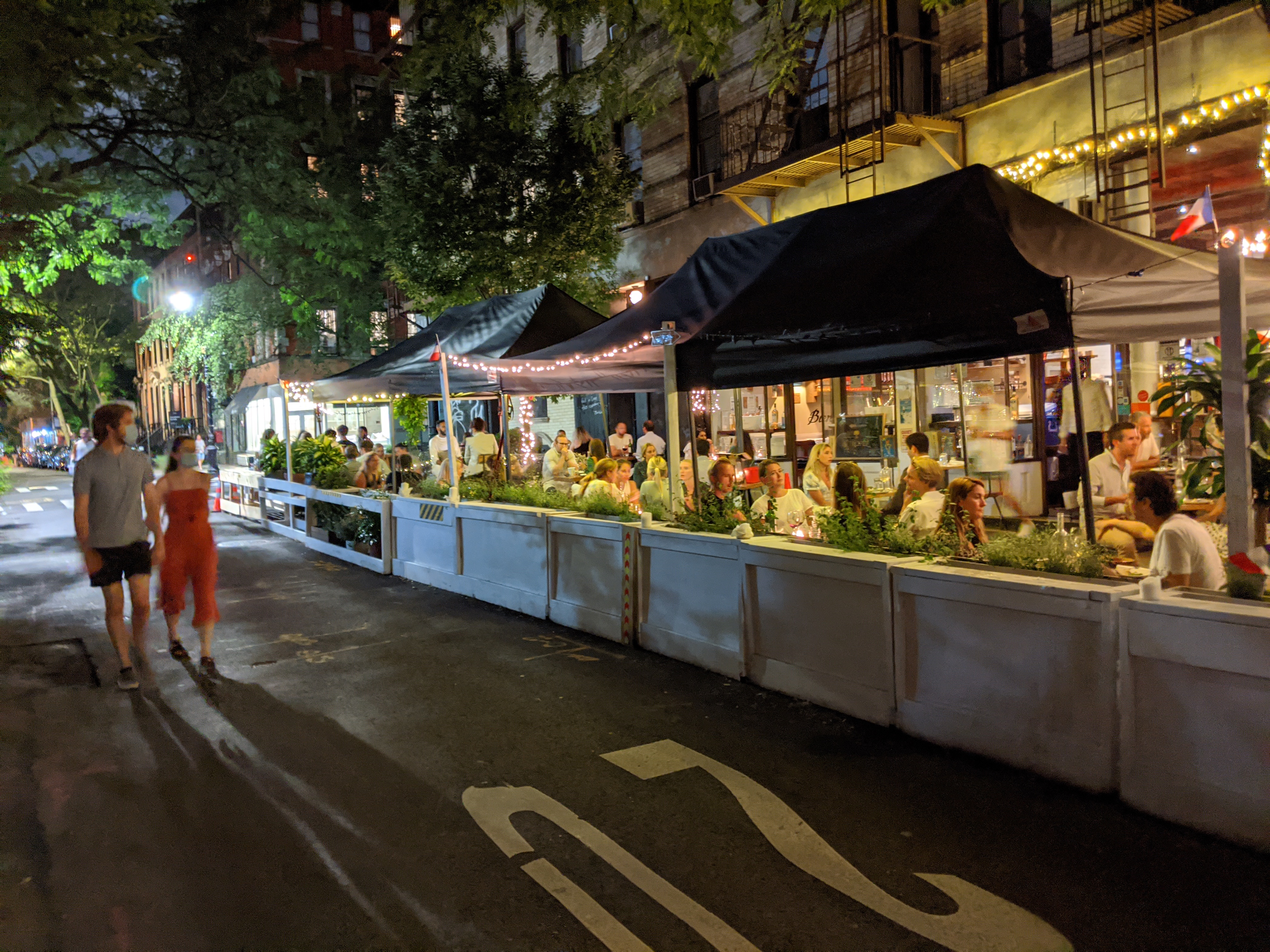 3단계 재개방 기간 동안 실내 식사를 재개하는 계획은 연기되었다. 다른 주에서 실내 식사는 특정 장소에서 슈퍼 확산을 초래했다. 이를 부분적으로 보상하기 위해 실외 공간을 확장하여 실외 식사를 위한 공간을 더 많이 만들었다.[32][33] 4단계에서 박물관을 재개하는 계획도 연기되었다.[34]
