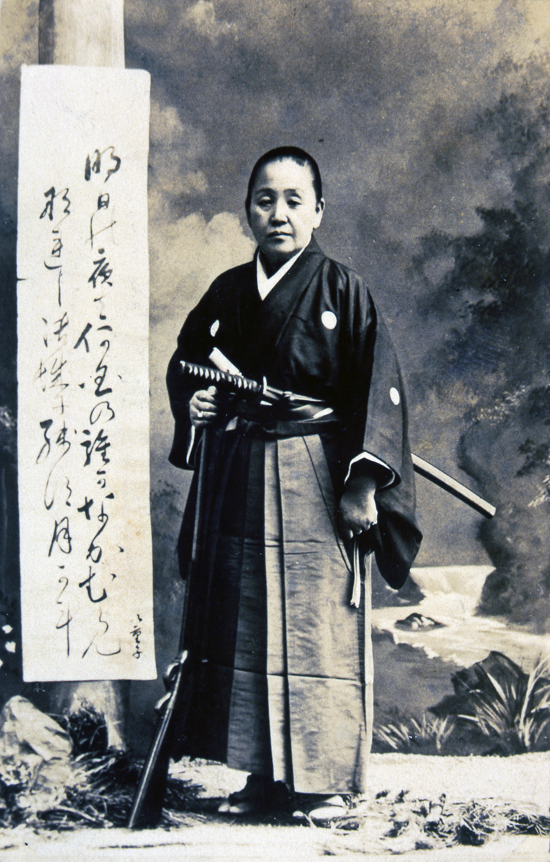 생애에서 "막말의 잔 다르크", "아이즈의 도모에 고젠", "원조 핸섬 우먼", "일본의 나이팅게일" 등으로 불렸다.