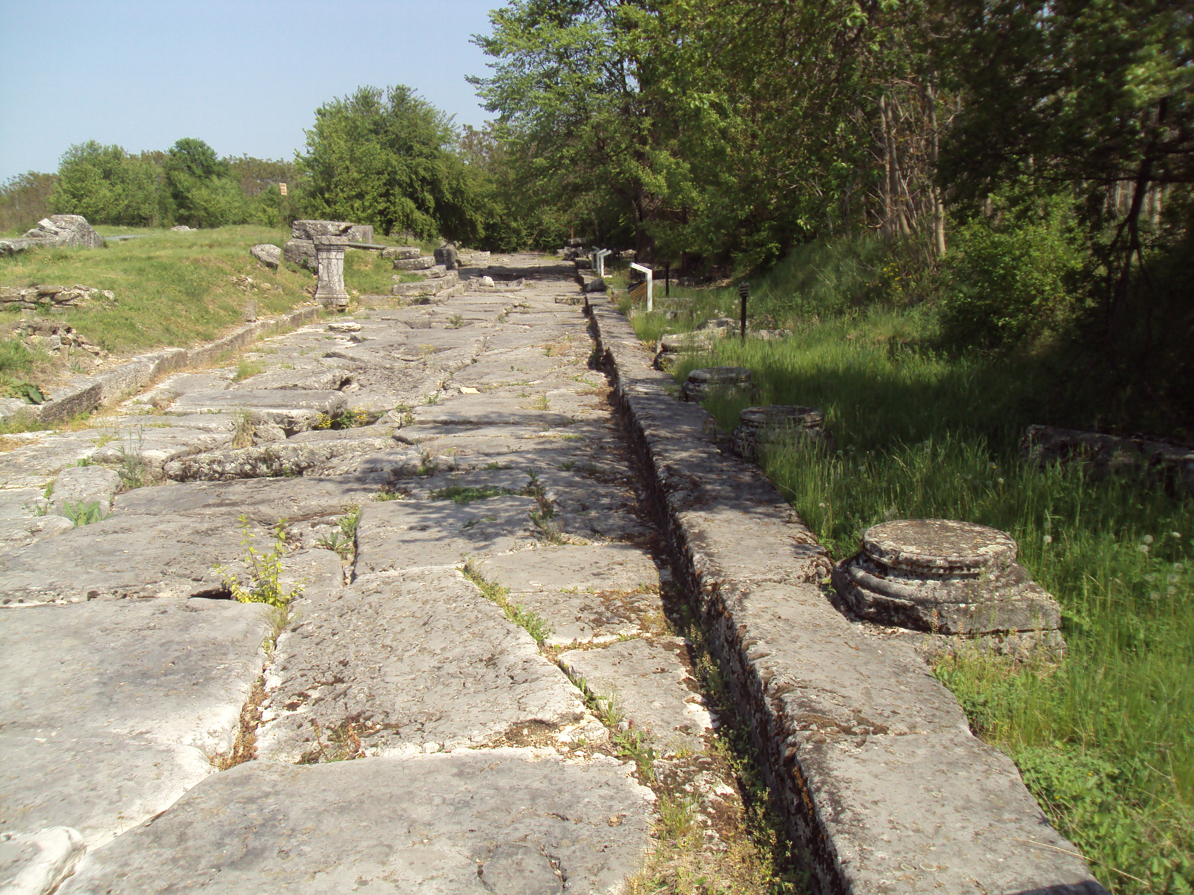 아고라 중앙 도로는 거대한 덮개돌로 포장되었고, 점검용 맨홀이 있는 하수도와 증기 난방이 되는 야외 보도가 있었다. 이 길을 따라 이국적인 식물이 재배되었을 것으로 추정된다. 불가리아에서 유일하게 심장 모양 단면의 기둥이 니코폴리스 아드 이스트룸에서 발견되었다.