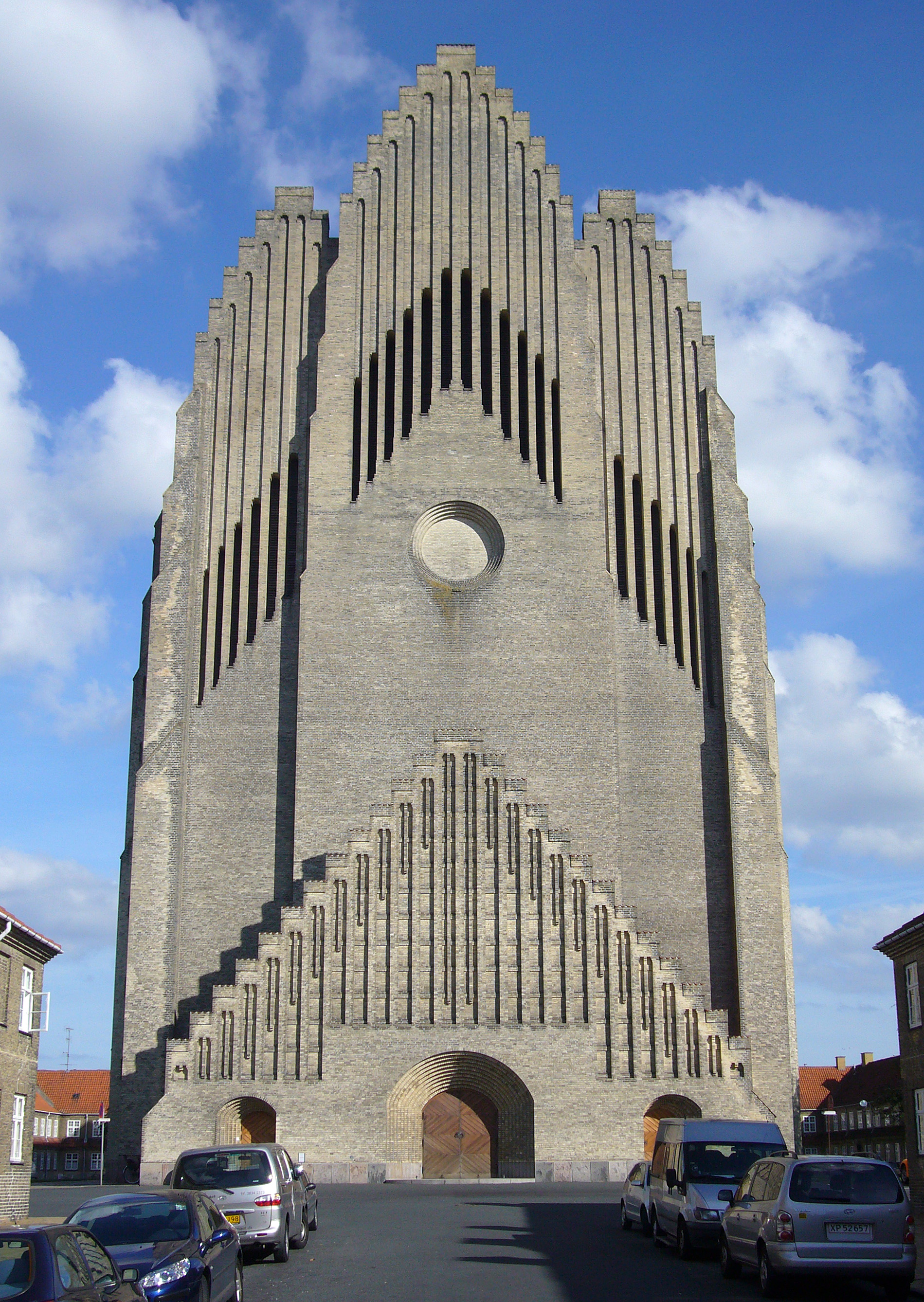 - 그룬트비 교회는 덴마크 건축가 페데르 빌헬름 옌센-클린트가 그룬트비를 기념하기 위해 설계한 것으로, 코펜하겐 비스페베르 지역에 있다. 신고딕 표현주의 양식으로 지어진 이 교회는 노란 벽돌로 지어졌으며 1940년에 완공되었다.