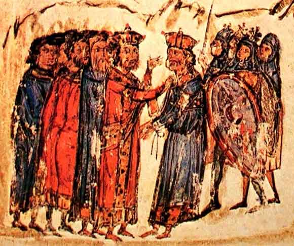 미하일 1세 랑가베는 811년부터 813년까지 비잔티움 제국의 황제로서 프랑크 왕국과의 관계 재정립과 베네치아 반환 등의 업적을 남겼으나, 불가르족과의 전쟁 패배 후 레오 5세에게 양위하고 수도사가 되었다. - 니키포로스 왕조 - 니키포로스 왕조 치하의 동로마 제국