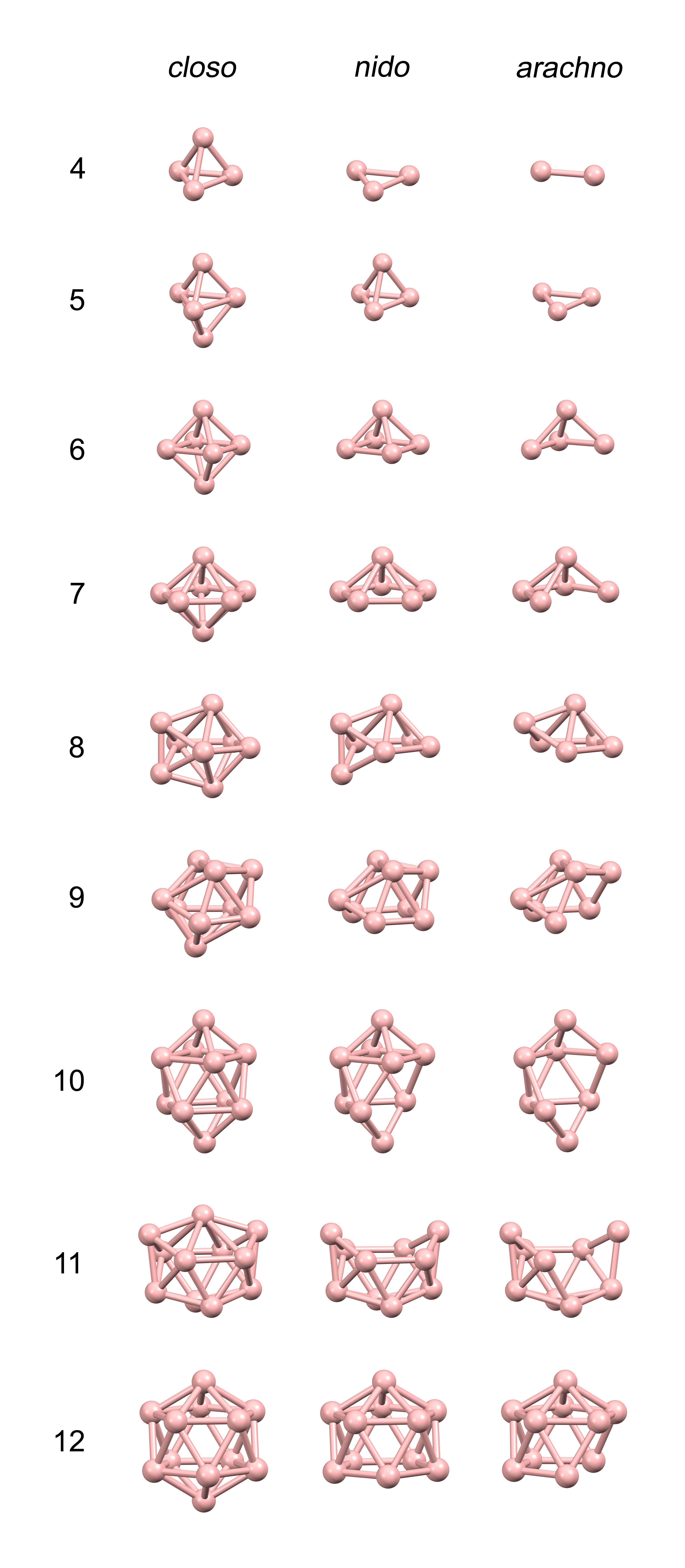 일반적으로, ''n''개의 꼭짓점을 가진 ''closo'' 구조는 ''n''-꼭짓점 다면체이다.