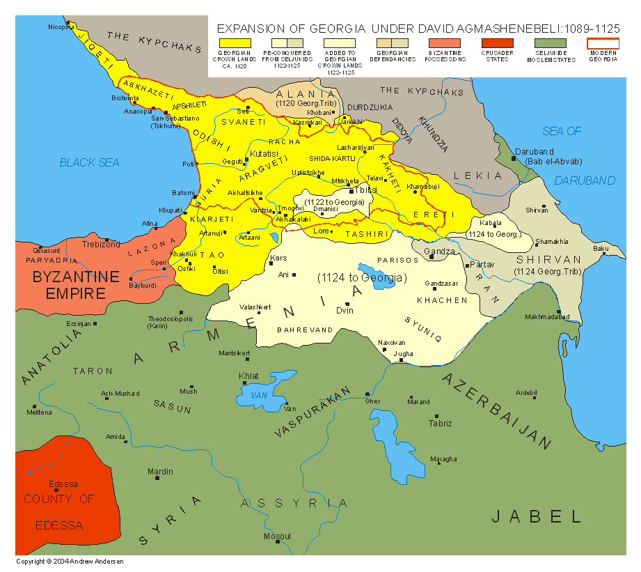 다비트 4세의 통치 기간 동안 조지아는 흑해에서 카스피해까지, 대(大) 코카서스 산맥에서 북부 아르메니아까지 확장되어 역사상 최대 영토를 확보했다.
