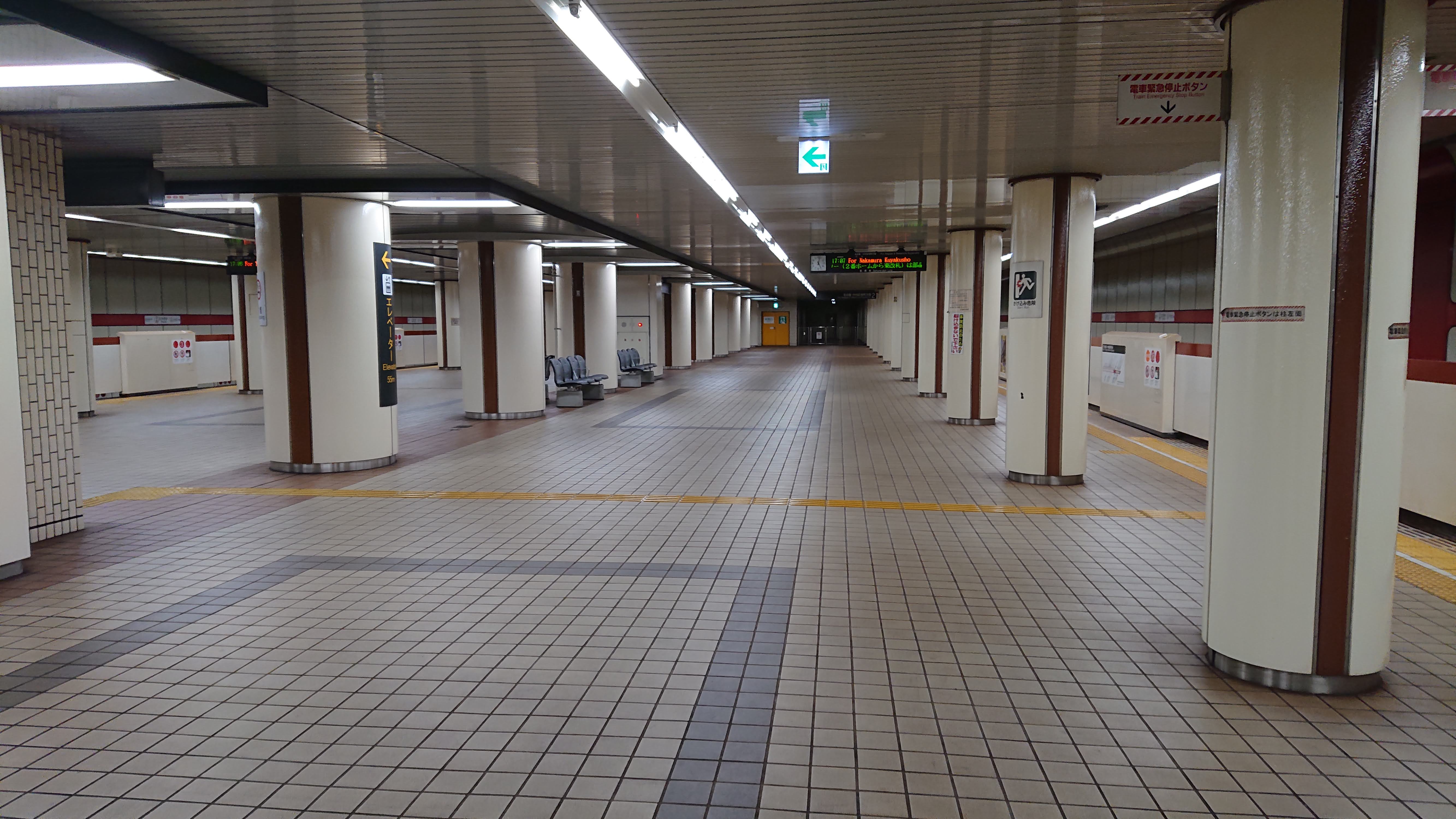 섬식 승강장 1면 2선의 지하역으로 스크린도어가 설치되어 있다. 플랫폼은 20m 8량 편성까지 대응한다. 헤이안도리 역에서 당역까지 나고야 시영 지하철 가미이다 선을 연장하여 환승역이 될 예정이었으나 계획은 중단되었다.[3]