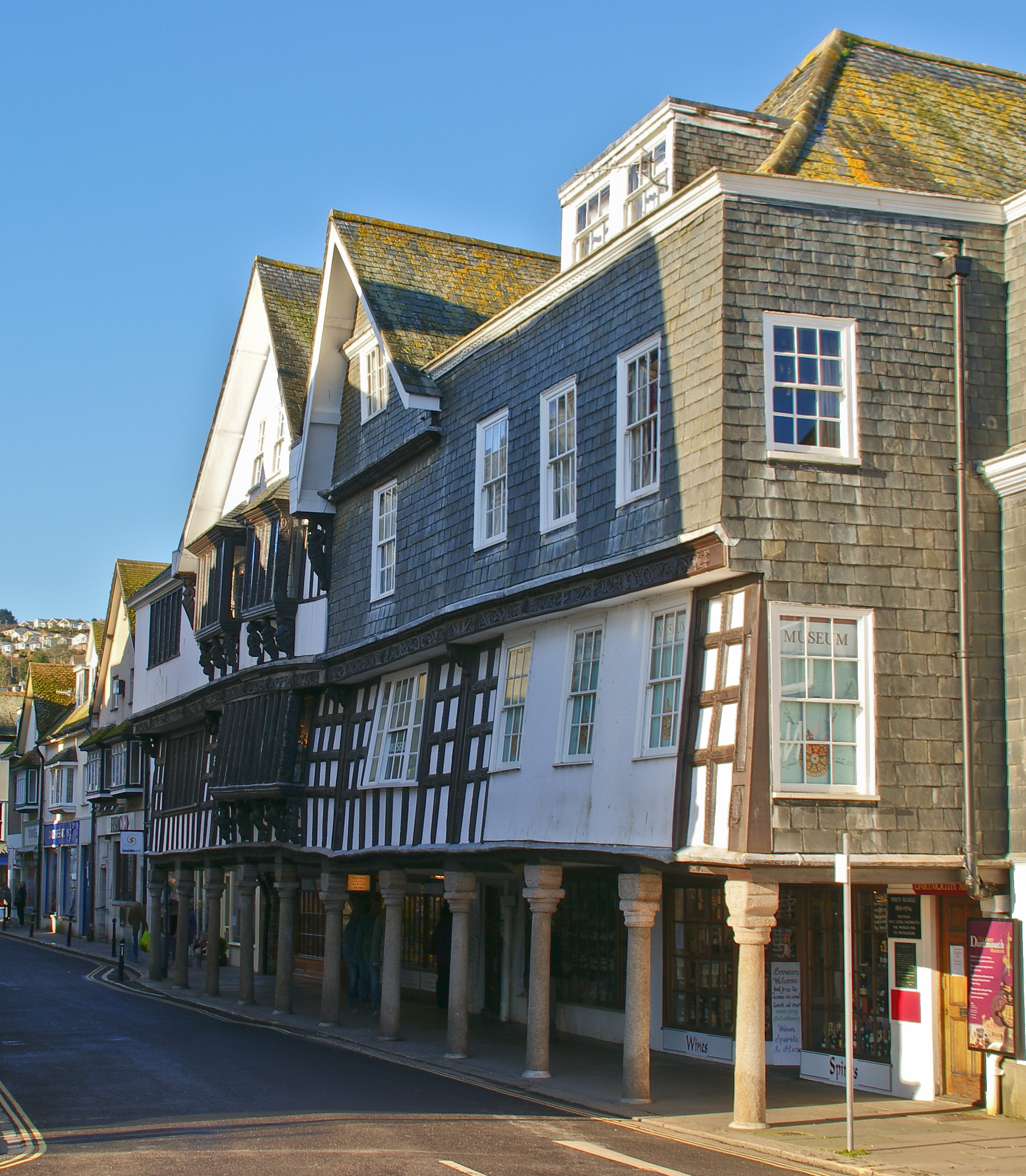 이 도시에는 많은 중세 시대 및 엘리자베스 시대의 거리 풍경과 역사적인 건물들이 있으며, 그중 다수는 지정 문화재로 보호받고 있다.[17] 특히 1635년부터 1640년 사이에 지어진 버터워크(Butterwalk)는 화강암 기둥 위에 세워진 정교하게 조각된 목조 파사드가 인상적인 건물이다. 잉글랜드의 찰스 2세는 1671년 폭풍우를 피해 이곳에 머물렀으며, 현재 다트머스 박물관의 일부인 방에서 재판을 열기도 했다.[18] 당시의 실내 장식 상당 부분이 아직 남아 있다.