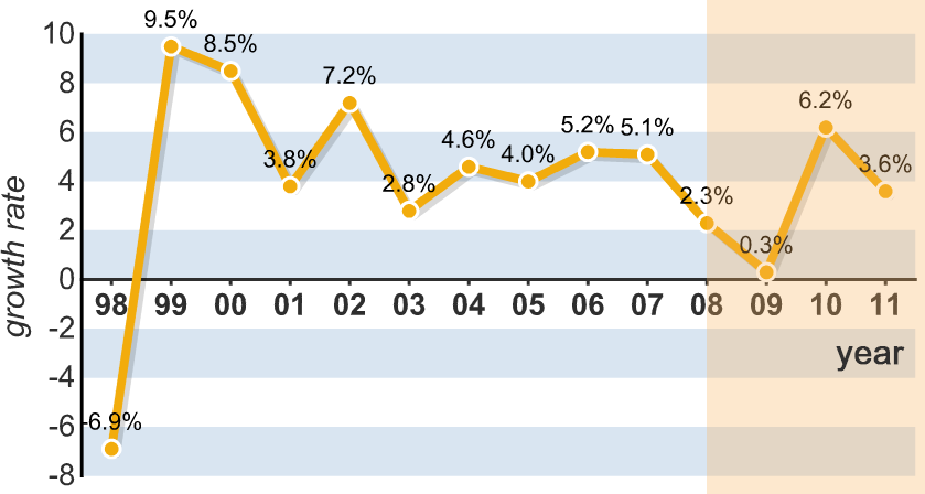 IMF 조사에 따르면, 각 정부의 평균 경제성장률은 다음과 같다.