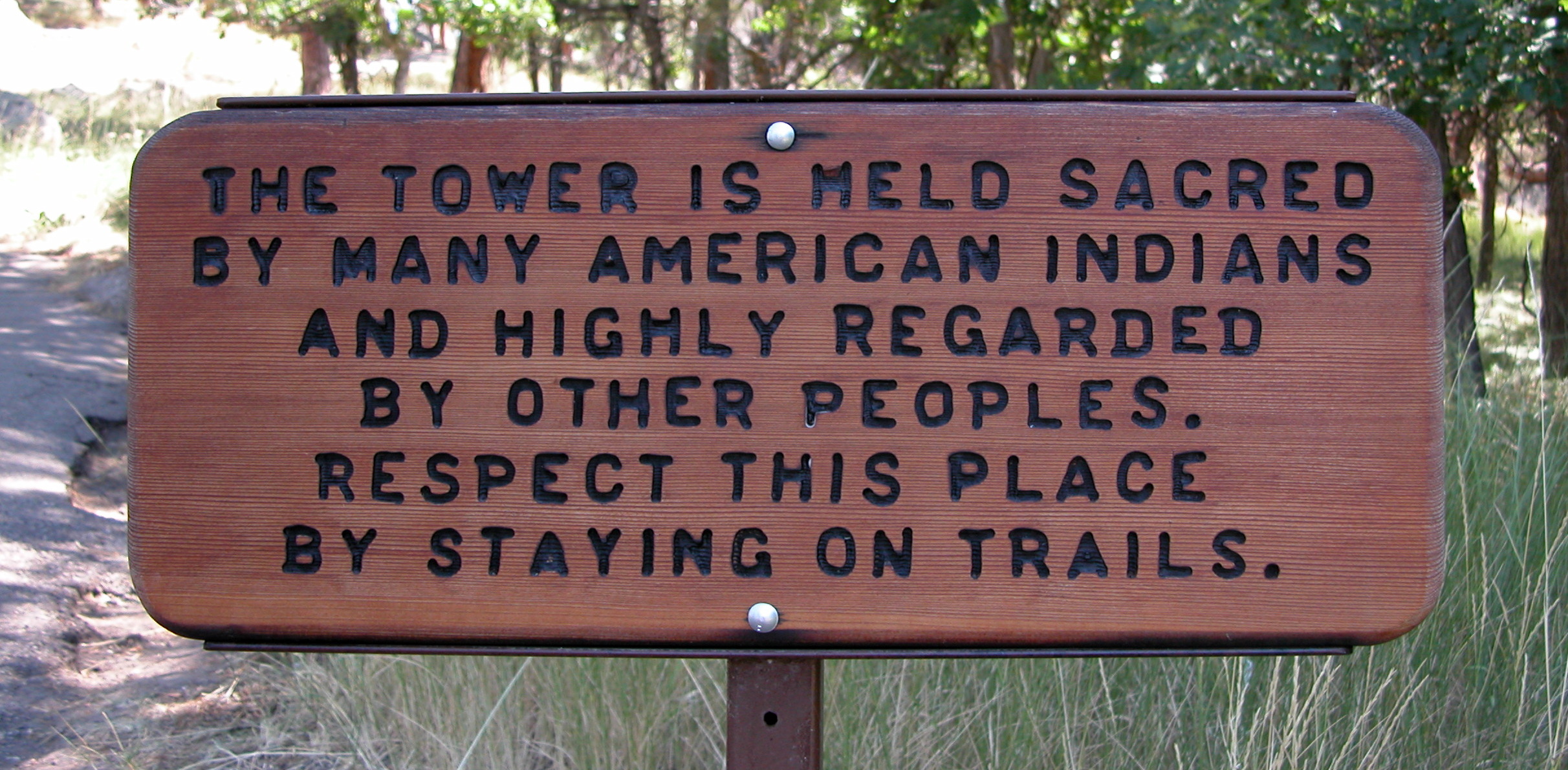 데블스 타워는 라코타, 샤이엔, 키오와 등 여러 평원 부족에게 신성한 장소이다. 이 때문에 많은 아메리카 원주민 지도자들은 등반가들이 기념물을 오르는 것을 모독으로 여겨 반대했다. 등반가들은 연방 토지이기 때문에 등반할 권리가 있다고 주장했다. 결국 부족들이 의식을 치르는 6월 한 달 동안 자발적인 등반 금지령이 내려졌다. 등반가들은 6월에 타워에 오르지 않도록 요청받지만, 강제 사항은 아니다. 약 85%의 등반가가 이 금지령을 존중하는 것으로 알려져 있다.[38][39]