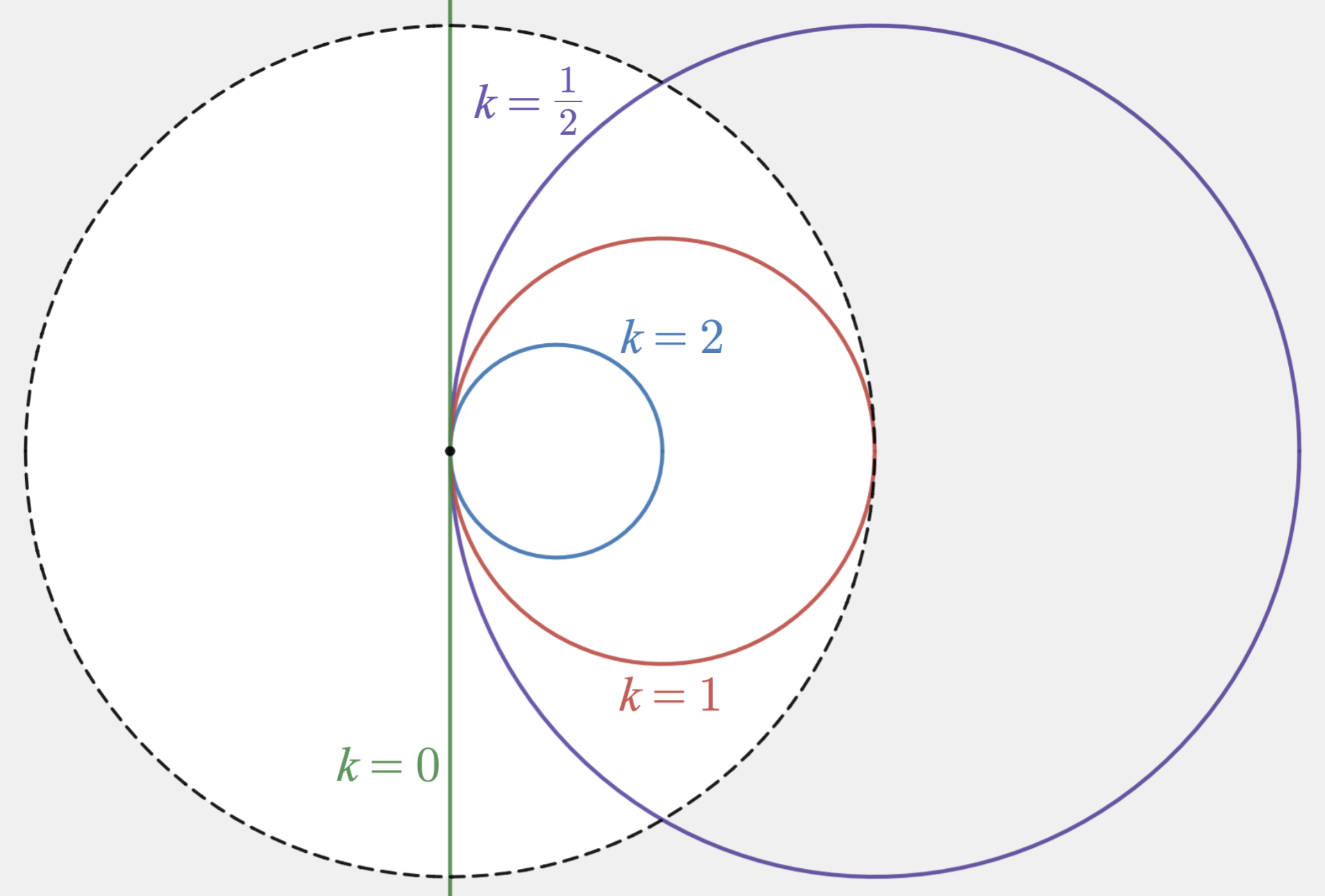 이는 두 평행선 사이에 접하는 원은 반지름(따라서 곡률의 절댓값)이 같아야 한다는 사실과 일치한다.