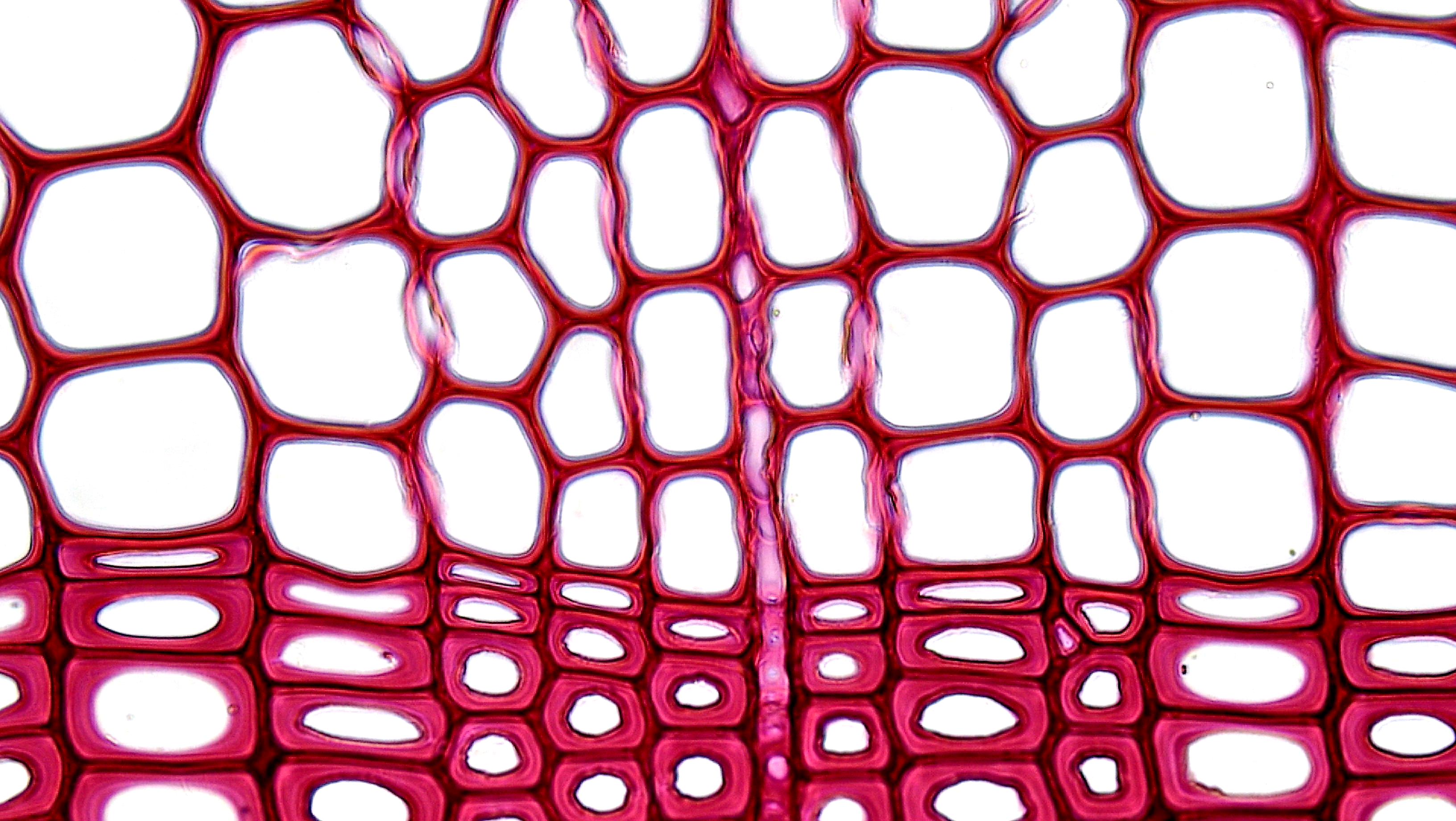 관다발 식물에서 물을 뿌리에서 줄기로 전달하는 조직인 물관부의 관상 요소(도관 요소, 가도관)는 줄기나 뿌리의 정단 분열 조직에서 유래하는 전형성층 또는 측면 분열 조직인 유관속 형성층에서 형성된다.[34] 이러한 세포는 확대 및 신장하면서 분화를 시작하며, 처음에는 일차 세포벽만으로 둘러싸여 있다. 일차 세포벽의 셀룰로스 미세 섬유는 비교적 거칠기 때문에 세포의 확대 및 신장이 가능하다.[34]