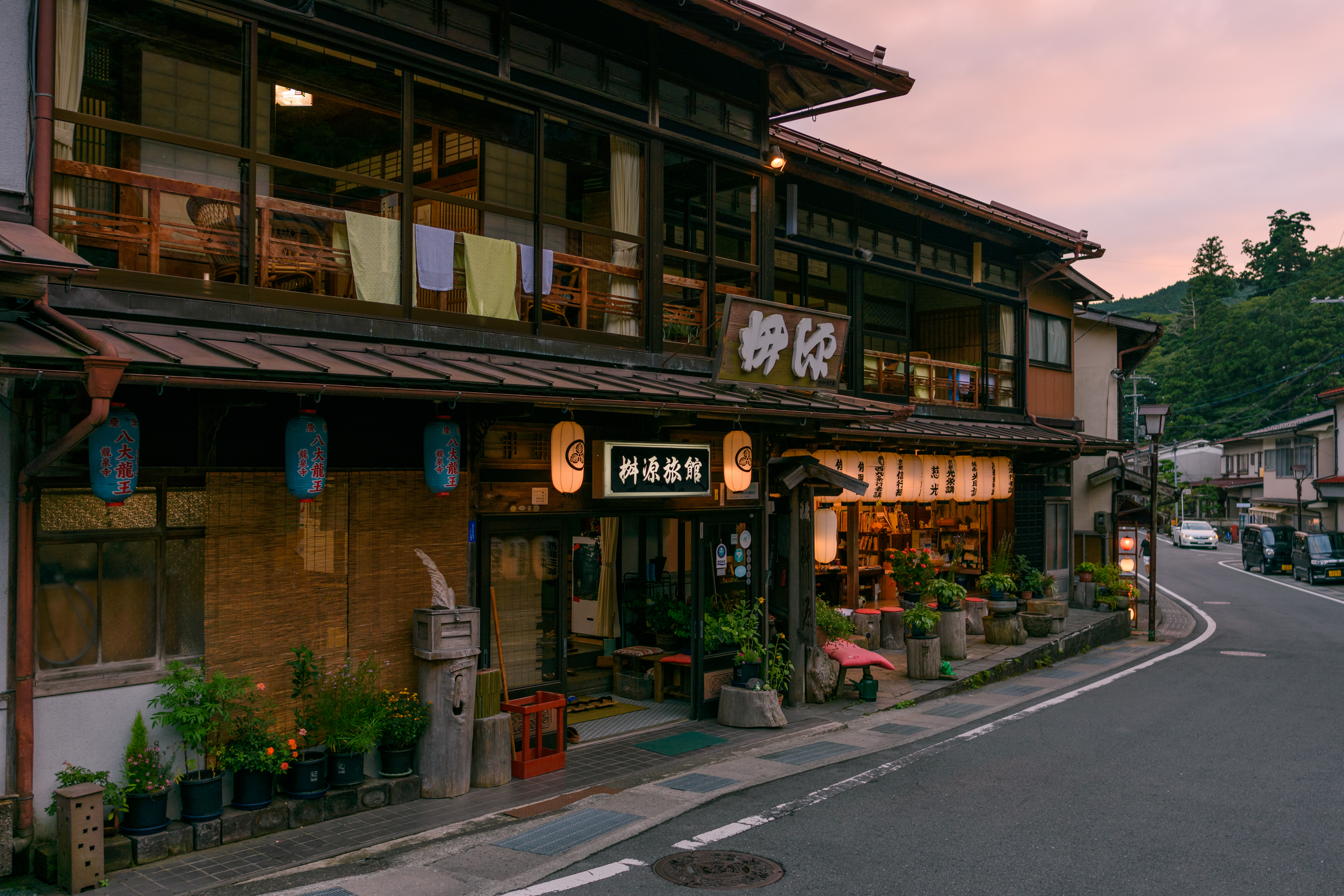 대봉산맥에서 발원하여 덴카와촌 북부를 흐르는 도로가와 강가에 위치한 온천 마을이다.[2] 역사적인 순 일본풍 목조 건축의 여관과 민박 등 숙박 시설 20여 채를 비롯하여 토산품점, 다라니게환 제조 판매점 13채, 그 외 다양한 상점들이 강가를 따라 늘어서 있다.[1] 마을 안으로는 오미네산으로 향하는 참배길이 지나가며, 길 양쪽으로 운치 있는 2층 목조 료칸들이 자리 잡고 있다.대봉산은 전통적으로 여인 금제가 지켜지는 수행의 산으로 알려져 있으며, 여름철에는 산 정상의 장왕당을 찾는 수행자나 참배객들로 붐빈다. 또한 서늘한 기후 덕분에 여름 피서지로도 인기가 높고, 가을에는 아름다운 단풍을 감상할 수 있는 명소이기도 하다.[6]