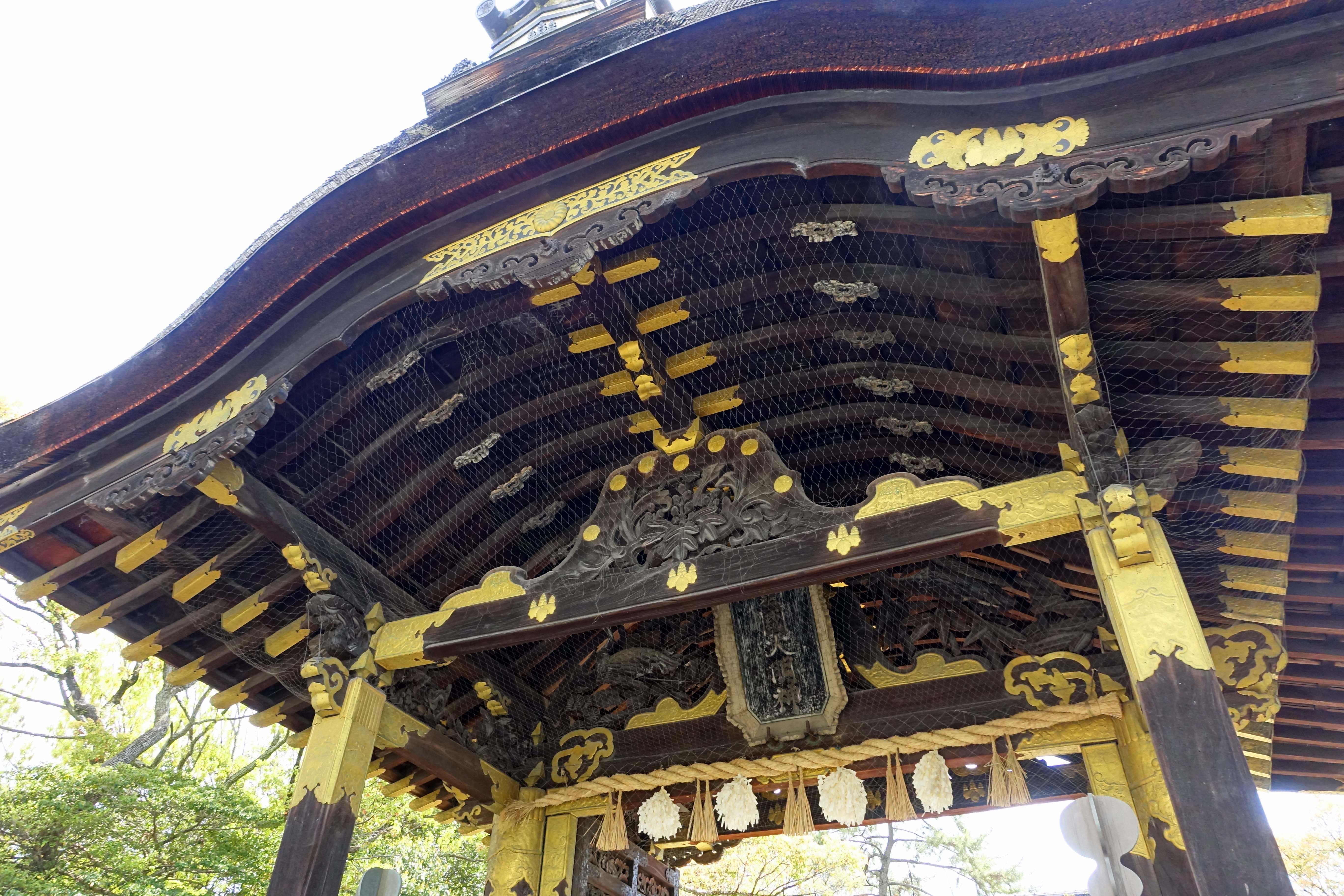 일반적으로 '''카라몬'''은 1598년 히데요시의 후시미성을 위해 처음 지어진 것으로 여겨진다.[7] 1623년 성이 해체되었을 때, 이 문은 처음에는 니조성으로 옮겨졌고,[8] 그 다음에는 난젠지의 콘치인으로 옮겨졌다. 마침내 메이지 유신 이후 1876년 도요쿠니 신사로 이전되었다.[9]
