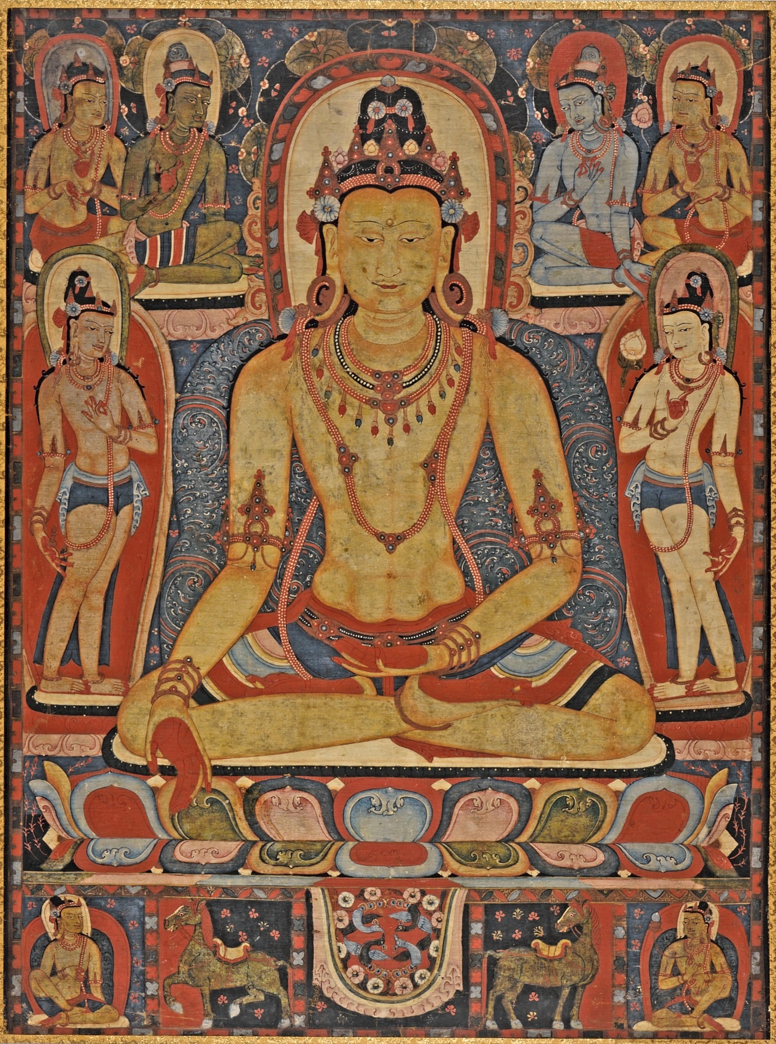 대승 불교는 기원전 4세기에 별도의 종파로 등장하면서 다른 사람을 돕기 위해 자신의 열반으로의 탈출을 포기하는 자비로운 존재인 보살의 역할을 강조했다. 티베트 미술에서 흔히 묘사되는 보살은 관세음보살로, 모든 것을 보고 요청을 듣는 자비로운 존재를 나타내는 각 손의 가운데에 눈이 있는 천 개의 팔을 가진 성인으로 묘사된다.