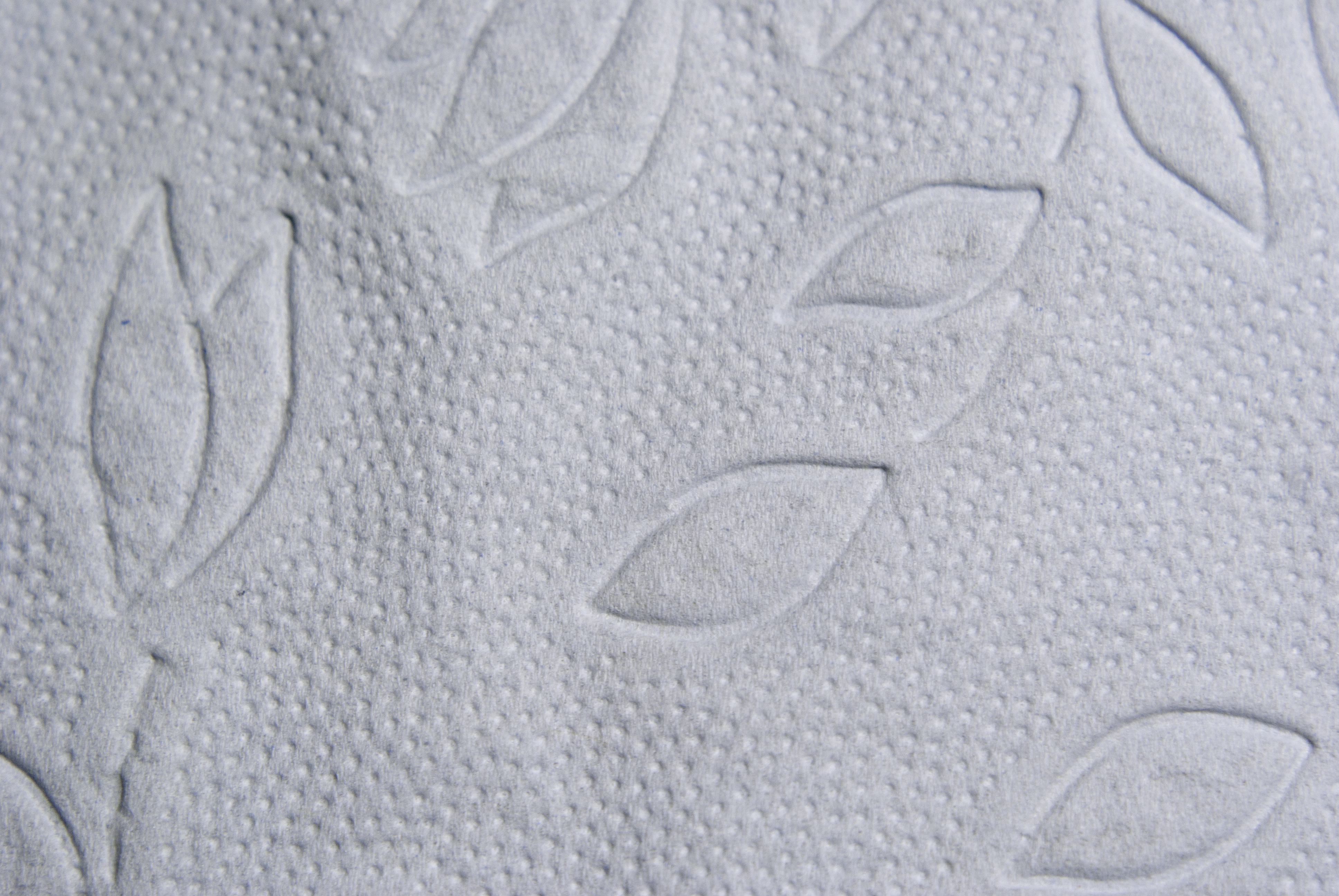 오늘날 미국에서는 무늬가 없는 단색 두루마리 휴지보다 무늬가 있는 두루마리 휴지가 대부분을 차지하며, 일반적으로 흰색 바탕에 다양한 색상과 크기의 엠보싱 장식 패턴이나 디자인이 새겨져 있다.[36] 엠보싱은 종이 표면에 올록볼록한 무늬를 새겨 넣어 부드러움과 흡수력을 높이는 가공 방식이다.