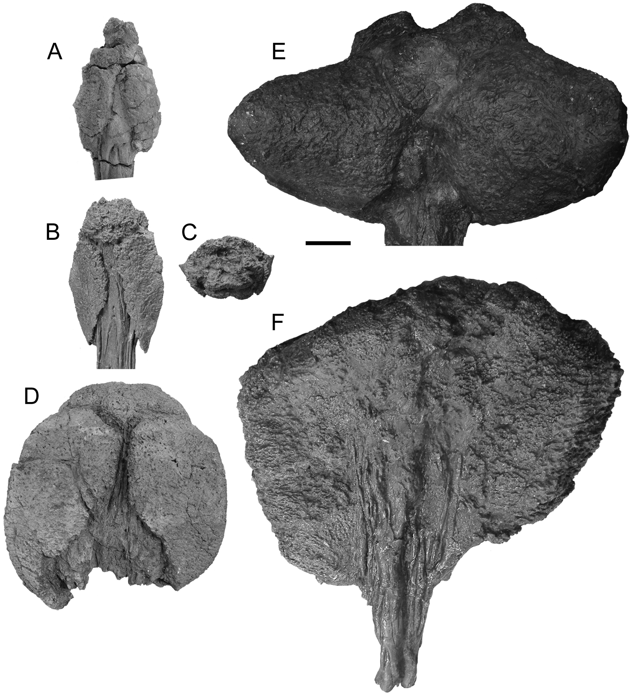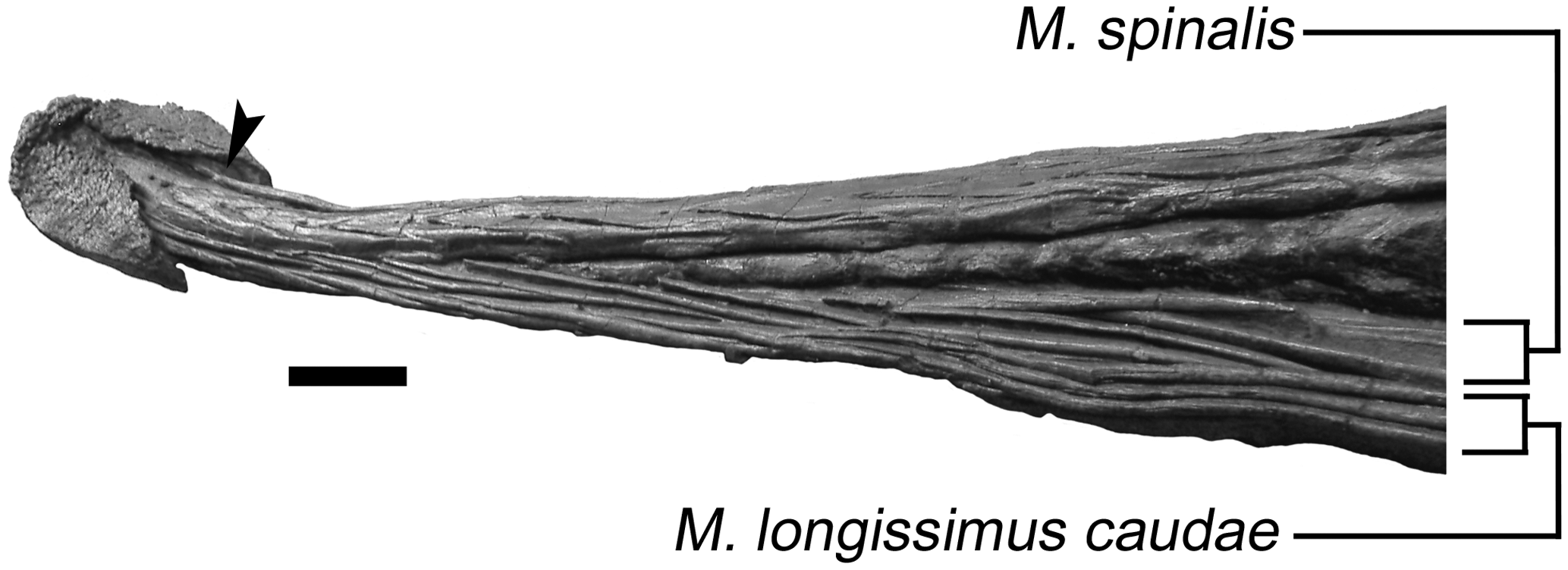 모식 표본은 왼쪽 면에 화석화된 피부와 골편의 흔적을 보존하고 있다.[2] 이 피부 인상은 작고(0.5cm에서 1cm), 아각형에서 아원형에 가까운 골편들이 거의 끊어지지 않는 모자이크 형태로 배열되어 있다.[2] 오른쪽 면의 피부 인상은 침식으로 인해 손실되었다.[2]