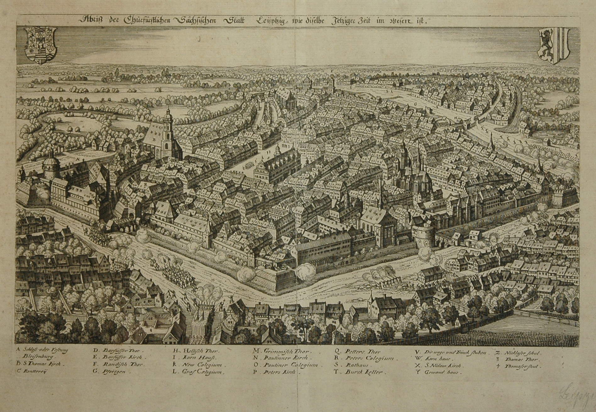 작센 선제후령의 도시가 된 근세 이후의 라이프치히는 삼십년 전쟁(브라이텐펠트 전투·뤼첸 전투)의 혼란을 거치면서 라이프치히 메세 (''후술하는 「박람회」 참조'') 개최지로서 유럽 최고의 상업 도시로 성장한다. 17세기 후반부터 수공업이 번성했다.[183] 시민층에 의한 각 시대의 예술·문화가 꽃피었고, 18세기에는 독일 지방 최초의 커피숍이 등장했으며, 게오르크 필립 텔레만과 요한 제바스티안 바흐가 시민들의 음악 활동을 이끌었고, 라이프치히 게반트하우스 관현악단이 창설되었다.