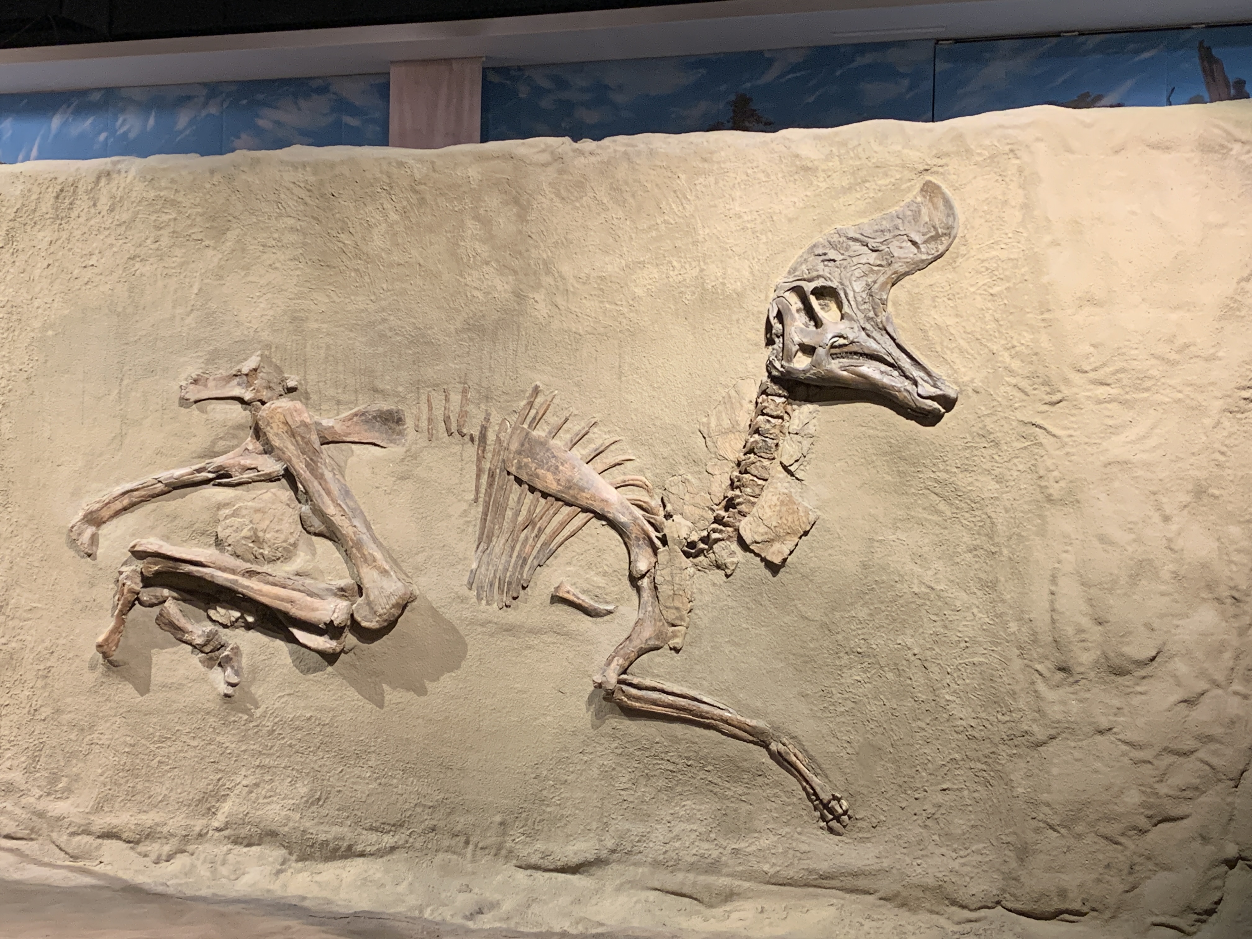 다이너소어 공원 층에서 발견된 ''람베오사우루스 람베이''(Lambeosaurus lambei)와 ''L. 매그니크리스타투스''(L. magnicristatus)는 뿔 달린 ''켄트로사우루스''(Centrosaurus), ''스티라코사우루스''(Styracosaurus), ''카스모사우루스''(Chasmosaurus), 같은 오리 주둥이 공룡인 ''프로사우롤로푸스''(Prosaurolophus), ''그리포사우루스''(Gryposaurus), 코리토사우루스(Corythosaurus), ''파라사우롤로푸스''(Parasaurolophus), 티라노사우루스과의 ''고르고사우루스''(Gorgosaurus), 그리고 갑옷을 입은 ''에드몬토니아''(Edmontonia)와 ''유오플로케팔루스''(Euoplocephalus)와 같은 잘 알려진 공룡을 포함하는, 다양하고 잘 기록된 선사 시대 동물 동물군의 구성원이었다.[37]