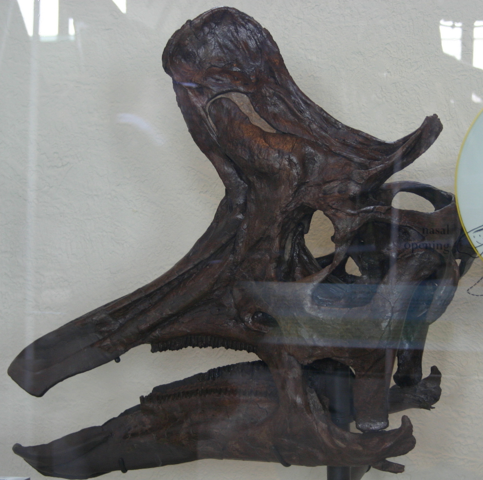 골질 돌기는 내부가 비어 있으며, 비강으로 통하고 있었다. 이 구조에 의해 후각을 높이거나 큰 소리를 낼 수 있었을 것으로 생각된다. 머리 부분의 골격 구조는 전체적으로 작거나, 혹은 뒤쪽 뼈의 돌기가 없거나 하는 등 개체 간에 약간의 차이가 있다. 한때 이를 근거로 개별적인 종이라고 생각하는 연구자도 있었으나, 현재는 이는 성별, 또는 성장 차이에 의한 것으로 여겨지고 있다.