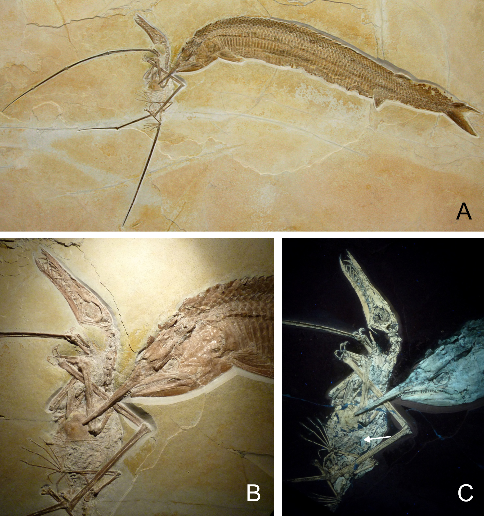 Ein Exemplar von ''Rhamphorhynchus'' mit Resten von Schwimmhaut