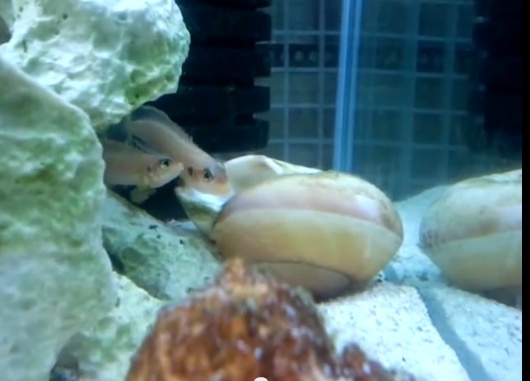 ''람프로로그스 오켈라투스''는 5USgal의 작은 수조에서도 기를 수 있지만, 이 경우 개체 수를 심각하게 제한하게 된다. 개체당 빈 수생 달胚이 껍질 하나와 얇은 규사 층을 제공해야 한다.[2] 모래는 이 물고기가 사육 상태에서 생존하는 데 필수적인 것은 아니지만, 자연스러운 행동을 보이도록 해준다. ''람프로로그스 오켈라투스''는 꼬리를 프로펠러처럼 움직여서 자신이 사는 껍질을 묻는다. 이것은 더 무겁고 입자가 큰 자갈로는 불가능하다.[3]