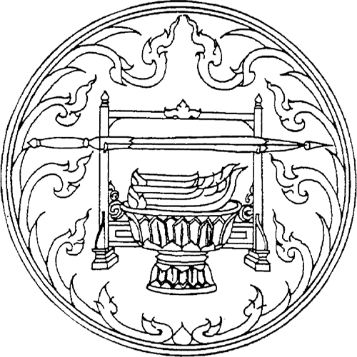 랏차부리 주의 인장은 랏차부리가 왕의 도시라는 것을 의미하기 때문에 황검과 왕의 신발을 보여준다.