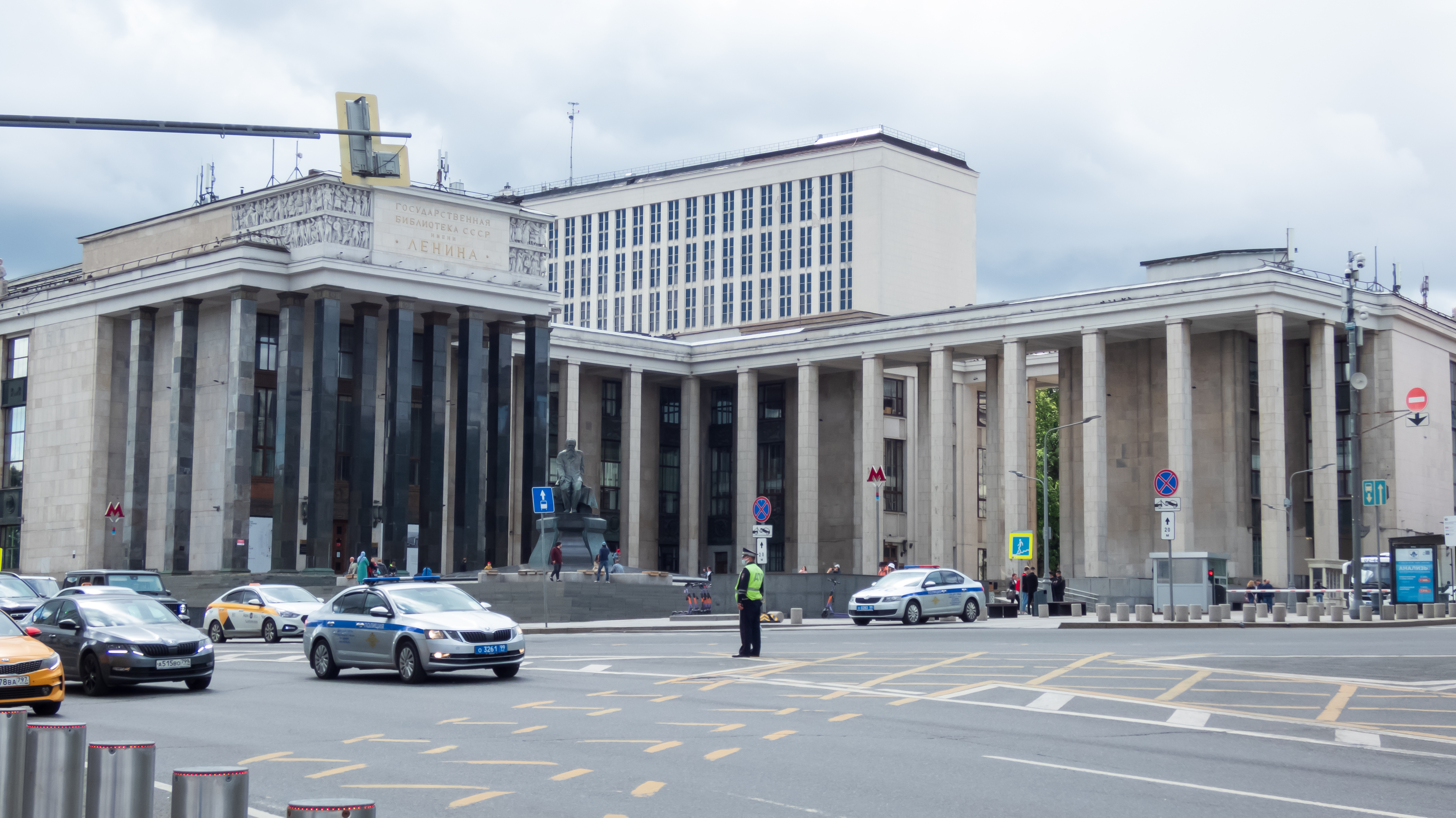 도서관 본관 건물. 외관은 여전히 소련 시대 이름인 "소련 레닌 국립 도서관"을 유지하고 있다.