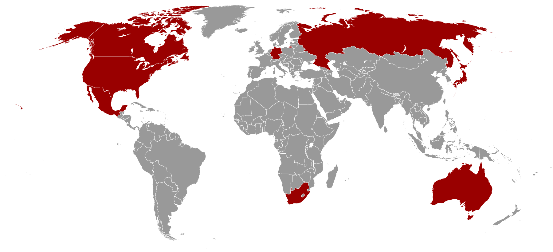 국가 | 미국 일본 독일 오스트레일리아 캐나다 프랑스 싱가포르 헝가리 뉴질랜드 덴마크 |