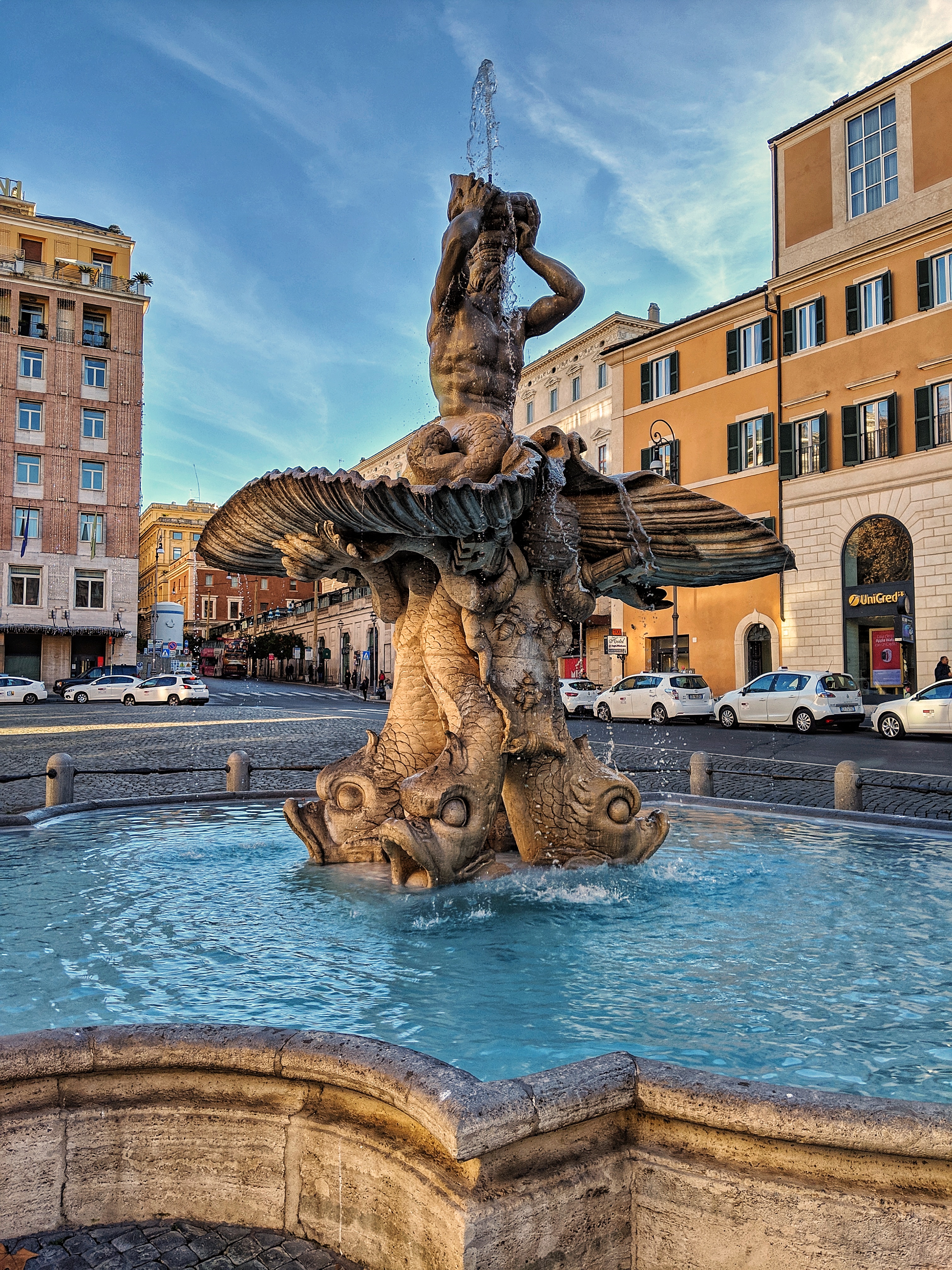 바르베리니 광장에 있는 베르니니의 작품 Fontana del Tritone|트리톤 분수it에서 볼 수 있듯이, 아침 햇살 속에서 춤추는 나이아스와 트리톤이 묘사되어 있다. 호른은 신들과 여신들이 소라 고둥을 불어 소리를 내는 모습을 보여준다.