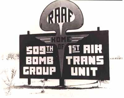 1946/47 로스웰 육군 비행장의 표지판. 제509폭격단에 대한 버섯 구름 기호에 주목하십시오.