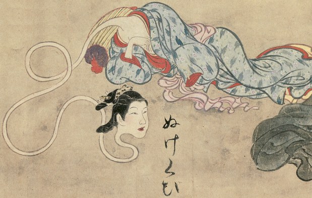 누케쿠비는 밤에 머리가 몸에서 떨어져 날아다니며 사람의 피를 마시는 등 악행을 저지르기도 하는 로쿠로쿠비의 일종이다. 누케쿠비는 자고 있을 때 몸이 움직이면 머리가 다시 몸과 결합할 수 없다는 약점을 가지고 있다.[8]