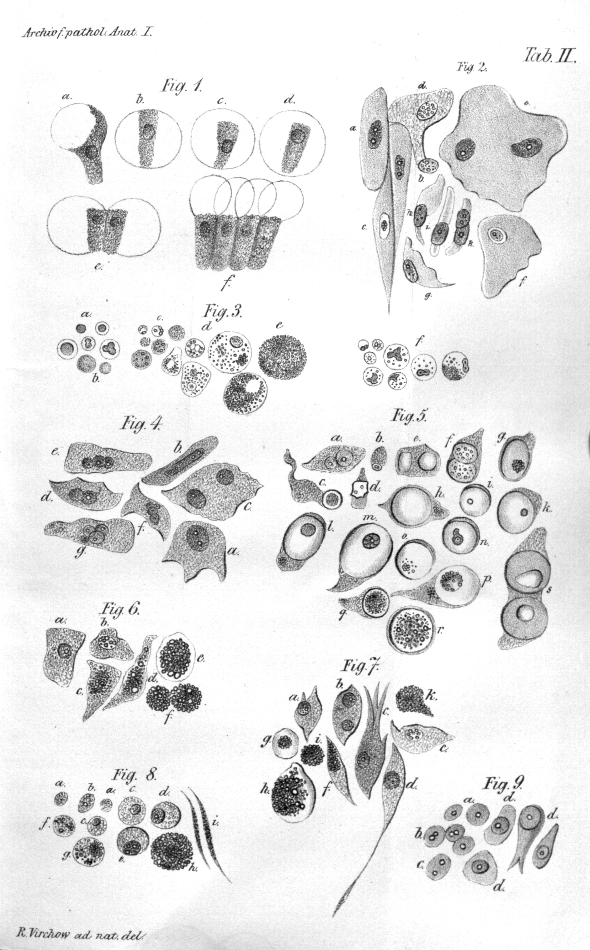 - 《생리학적 및 병리학적 조직학에 기반한 세포 병리학》(1859)