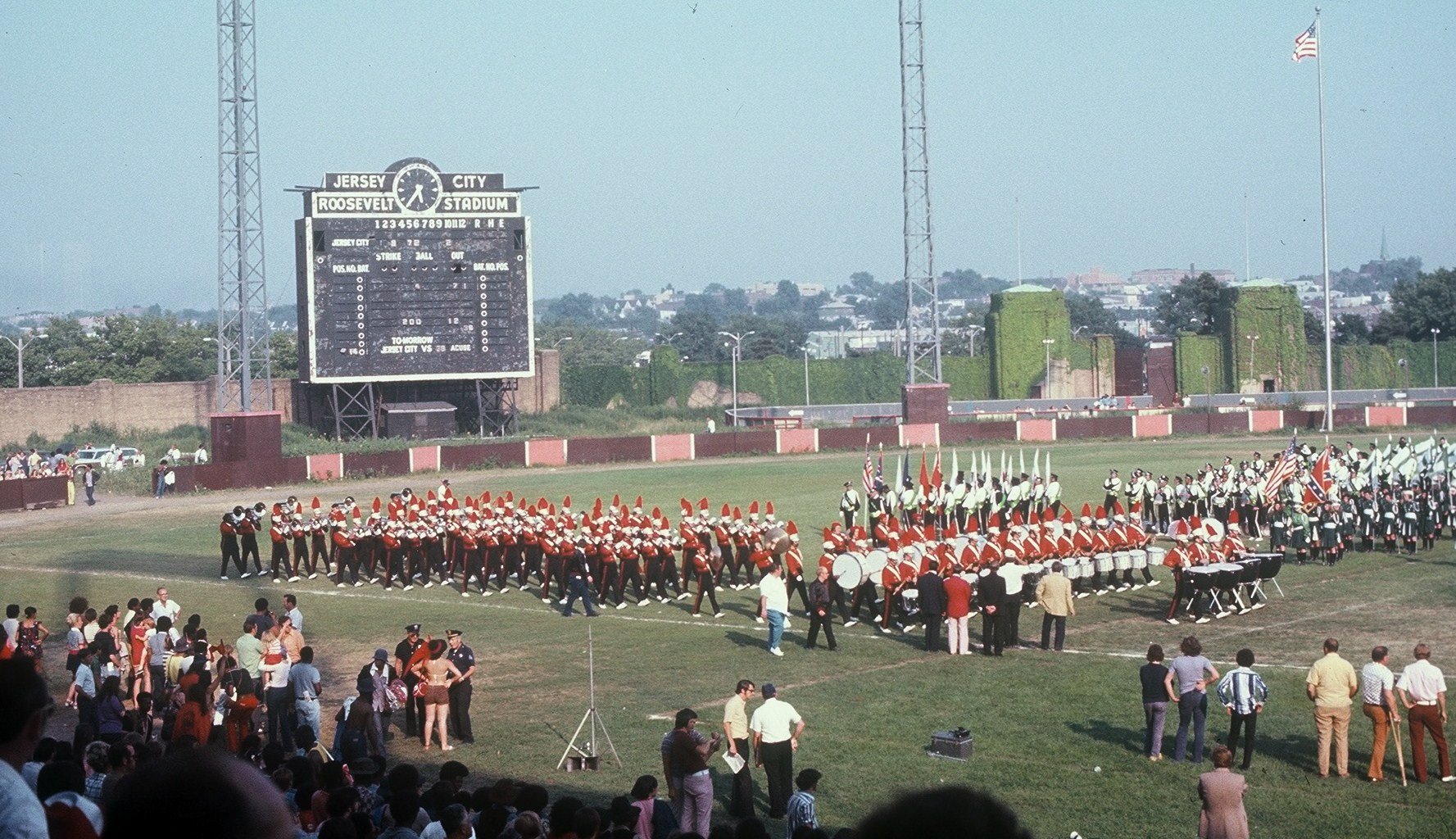 루스벨트 스타디움은 역사적으로 드럼 앤 버글 군단 경연의 인기 있는 장소였다. 1946년부터 1983년까지 이 경기장은 드럼 앤 버글 군단 단체들에게 '꿈'으로 여겨지던 전국 드림 경연(National Dream Contest)을 주최했다.[38] 1957년 9월 8일에는 뉴저지주 베이욘 연합 단체가 주최한 제9회 연례 '전국 드럼 경연(National Drum Contest)'이 열렸으며, 8개의 챔피언 드럼 군단이 경쟁했다.[39] 또한 1963년 9월 15일에는 미국과 캐나다의 주니어 드럼 앤 버글 군단을 위한 제1회 연례 월드 오픈 챔피언십(World Open Championship)이 Drum Corps News의 후원으로 개최되었다.[40]