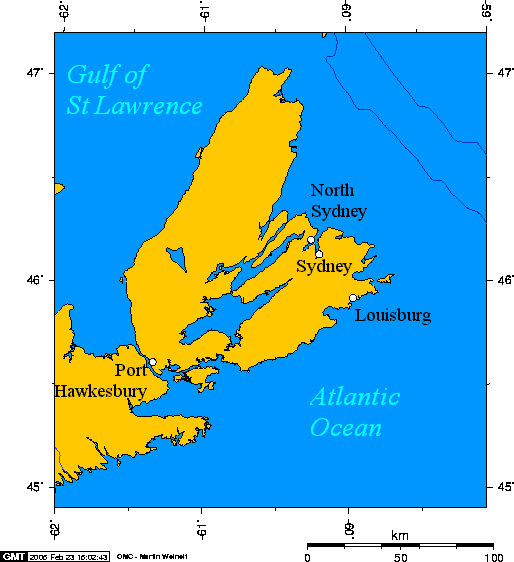 좌표 | 45°53′33″N 59°59′06″W |