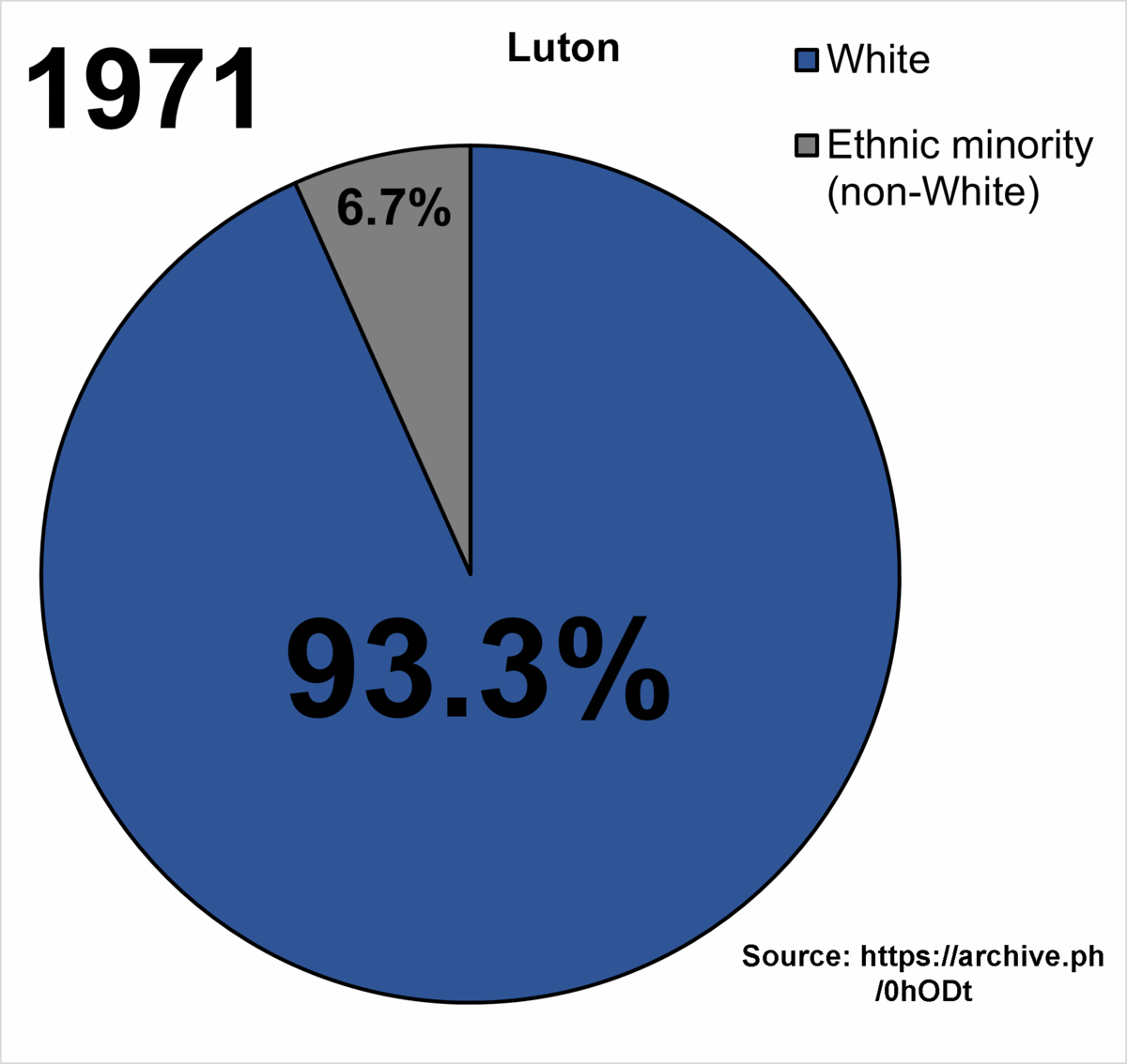 2011년 루턴 인구의 81%가 자신을 영국인으로 정의했다.[70]