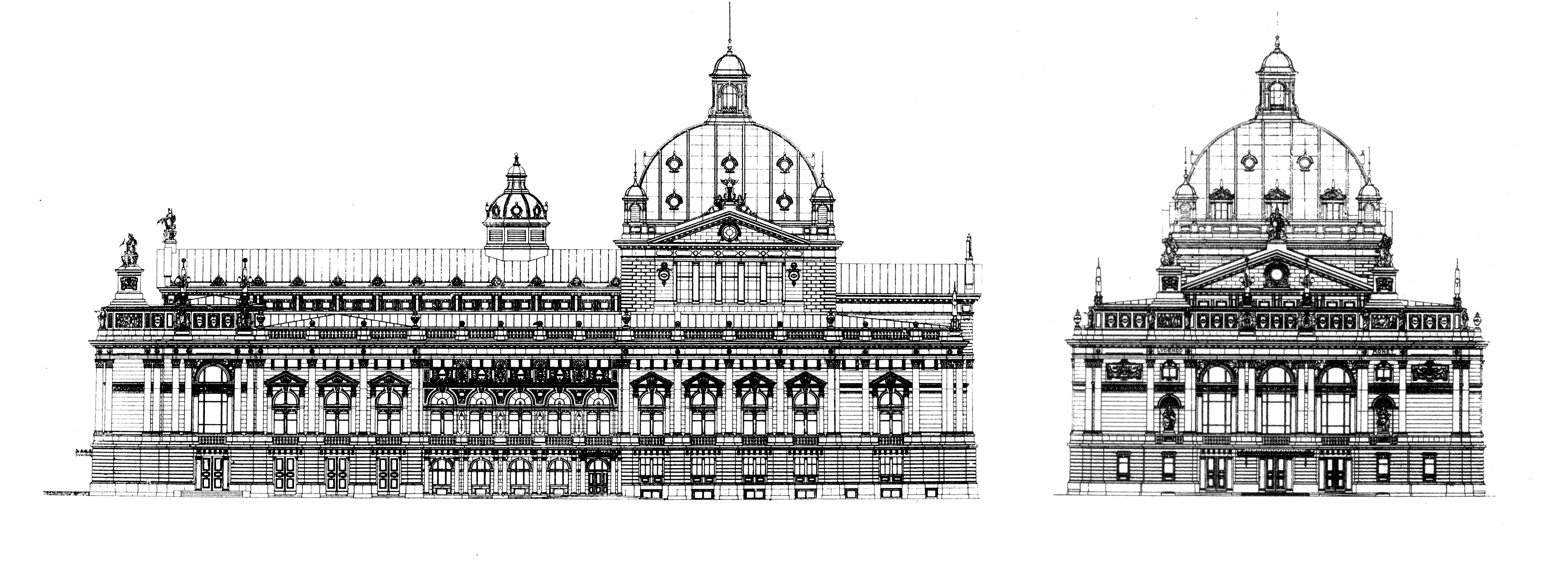 19세기 말, 르비우 시 지도자들은 갈리치아 수도에 대규모 시립 극장을 건립할 필요성을 느꼈다.[1] 1895년, 시는 건축 설계 공모전을 개최하였고, 비엔나의 건축가 펠너 & 헬머를 포함한 많은 건축가들이 참여하였으나, 이들의 설계는 너무 국제적이고 절충주의적이라는 이유로 거절되었다.[1]독립적인 심사위원단은 베를린 건축 아카데미를 졸업하고 르비우 공학 아카데미 학장이었던 지그문트 고르고레프스키의 설계를 선정하였다.[7][8][9][10] 고르고레프스키는 이미 밀집된 도시 중심부에 극장을 건설하기 위해 폴트바 강을 지하화하고, 유럽 최초로 철근 콘크리트 베이스를 사용하는 독창적인 설계를 제안하여 심사위원단을 놀라게 했다.[1][6]