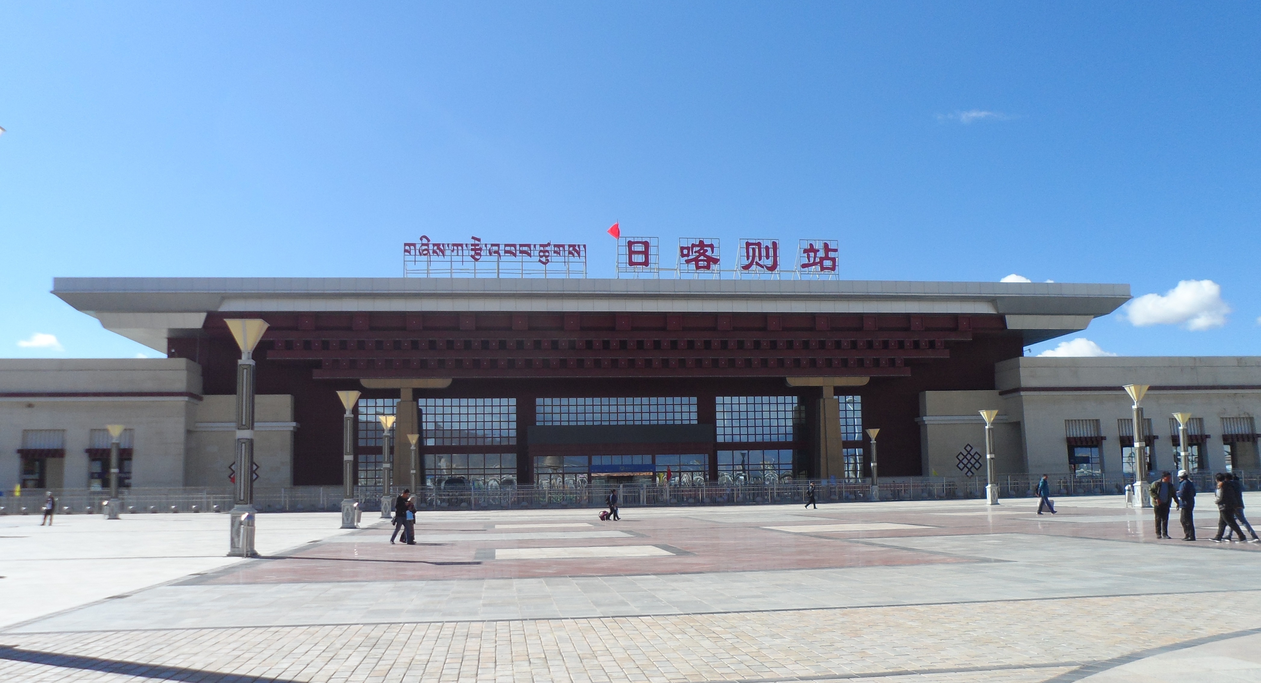 라싸-시가체 철도는 시가체 기차역을 라싸와 연결하며, 더 나아가 칭하이-티베트 철도를 통해 칭하이성과 연결된다.