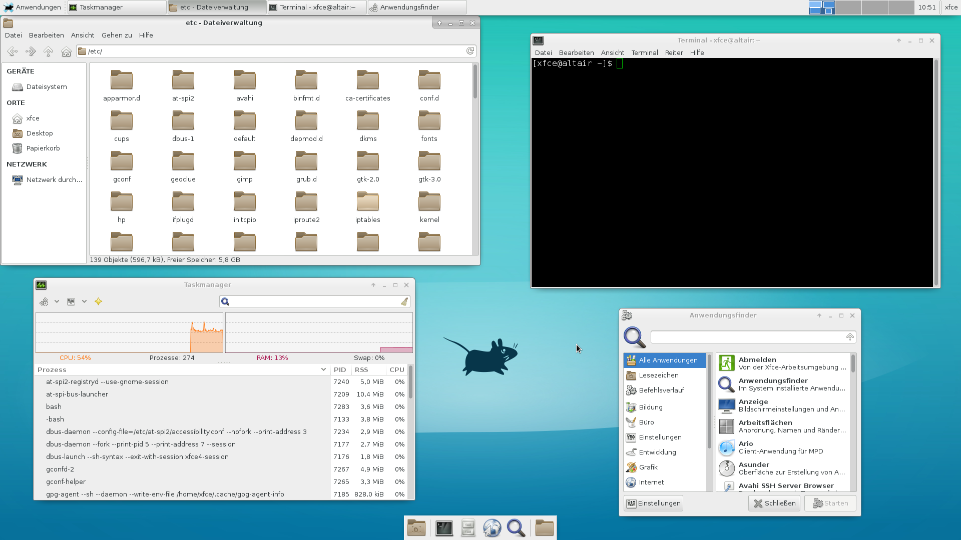 | 시스템 구성 요소 | init 데몬: systemd, runit, OpenRC 등. | 시스템 데몬: polkitd, smbd, sshd, udevd 등. | 윈도 시스템: X11, Wayland, SurfaceFlinger (안드로이드) | 그래픽스: 메사, AMD 카탈리스트 등. | 기타 라이브러리: GTK, Qt, EFL, SDL, SFML, FLTK, 그누스텝 등. | |